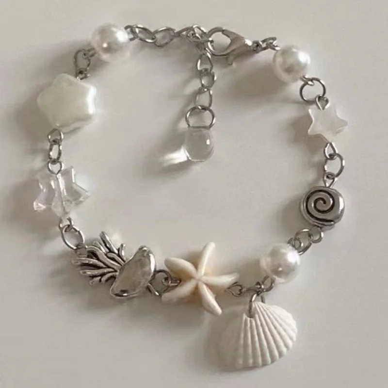 Model Name: 1Pc Exquisite Imitation Pearl Shell Star Fashion White Alloy Beaded Bracelet Women Party Favors