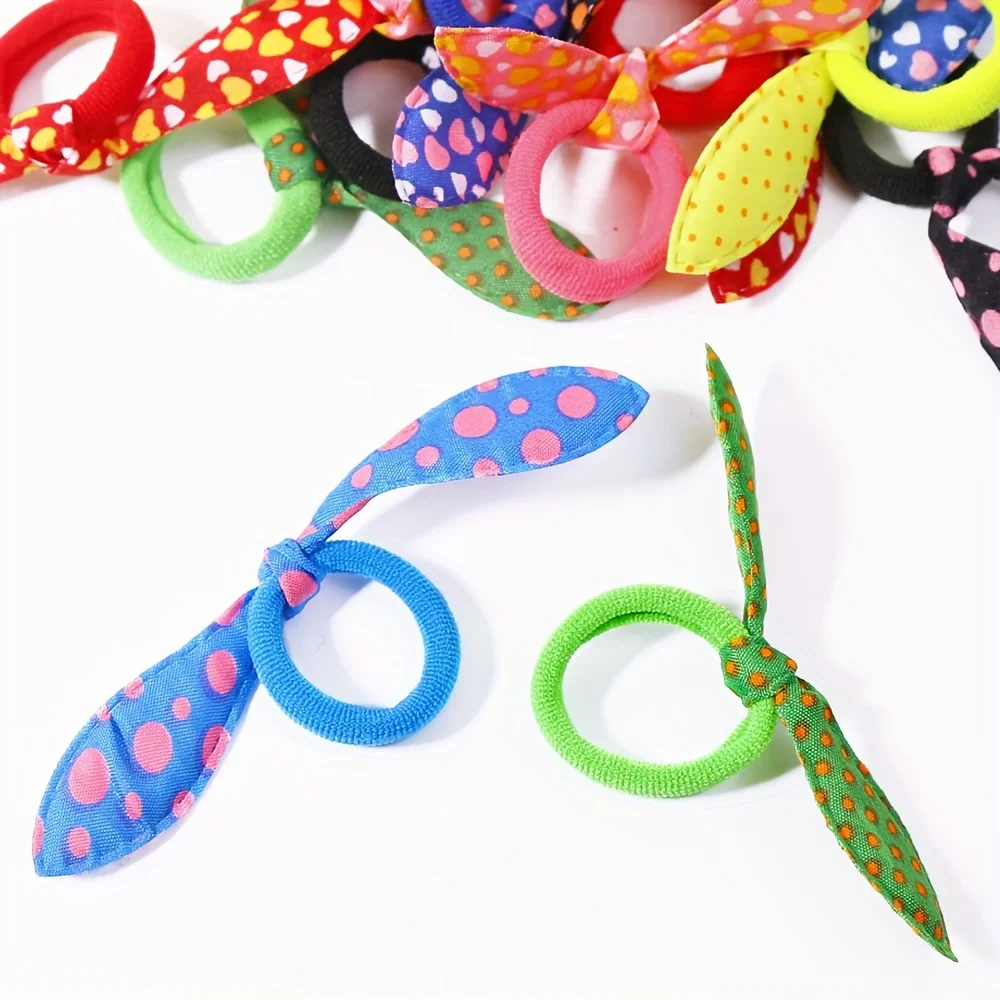 100Pcs/bag Ladies Lovely Rabbit Ear Hair Cord Wave Point Flower Print Cloth Art Hair Rope Hair Accessories
