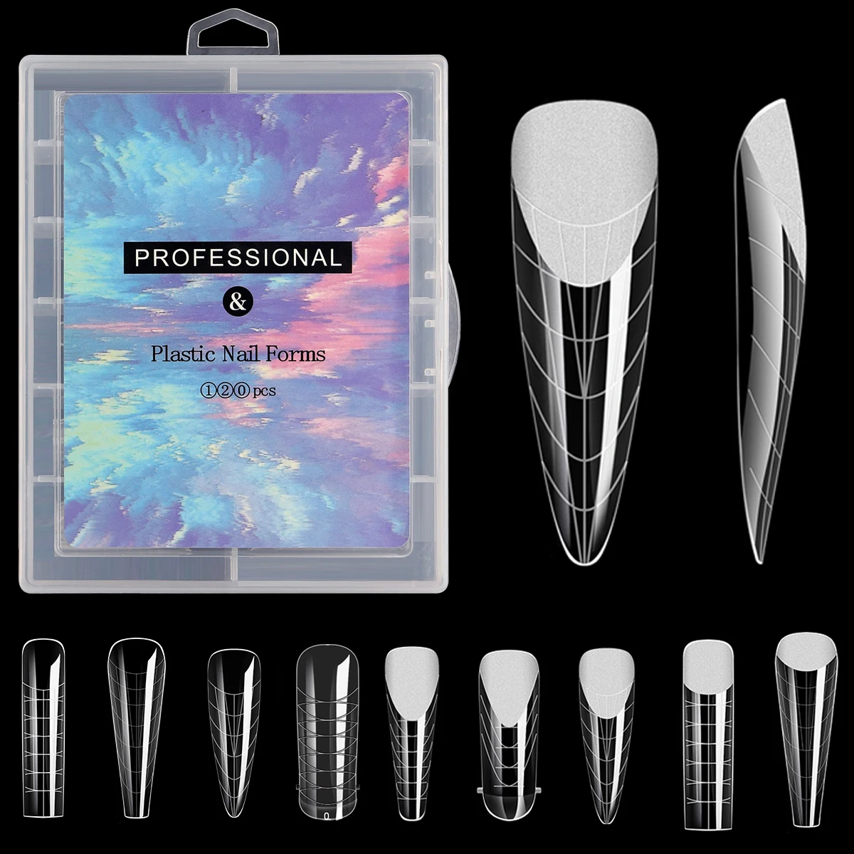 120 Pcs/Set Clear Dual Forms False Nails Full Cover Quick Building Gel Mold Tips Nail Extension Molds Upper Forms For Nails Tips
