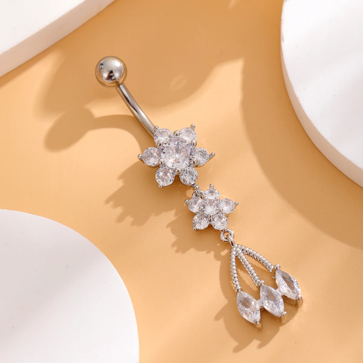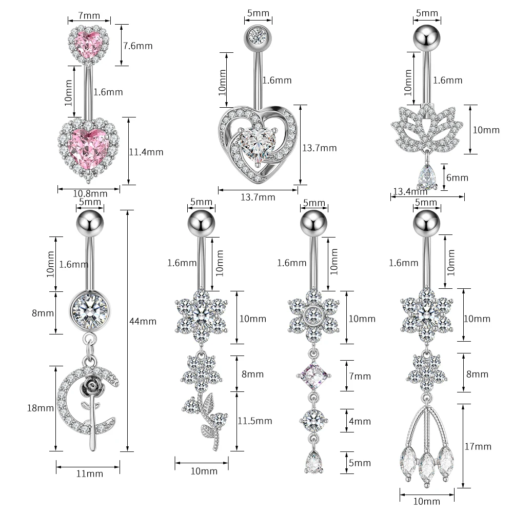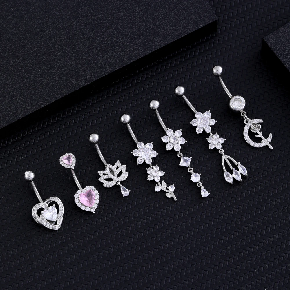 14G Heart Flower Shaped Navel Piercing Ornament Water Drop Belly Button Piercing Pendant Belly Nombril Piercing Women Jewelry