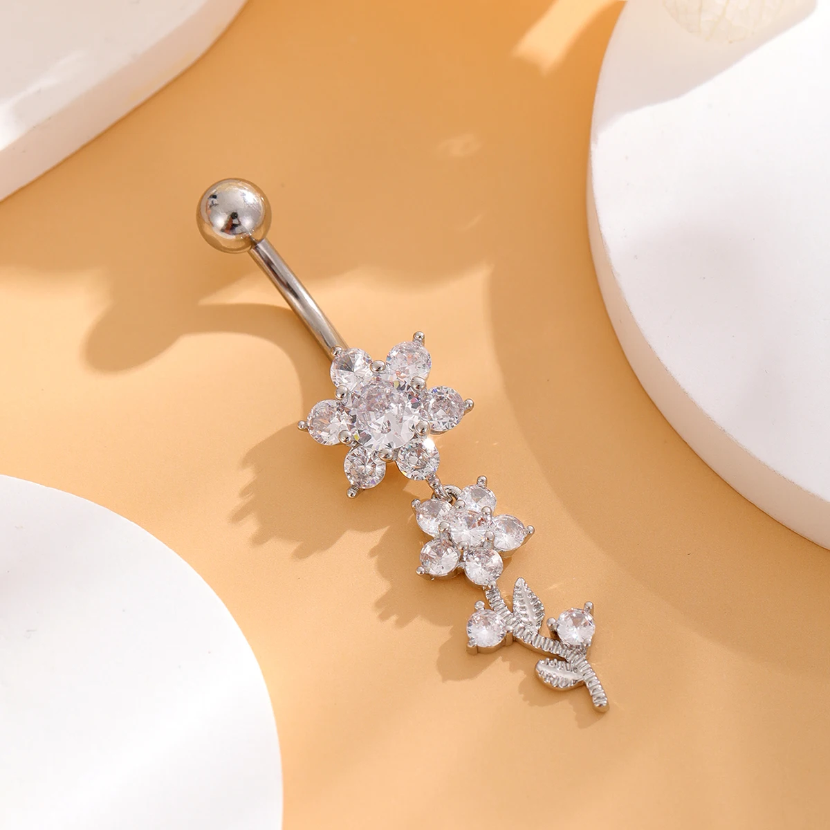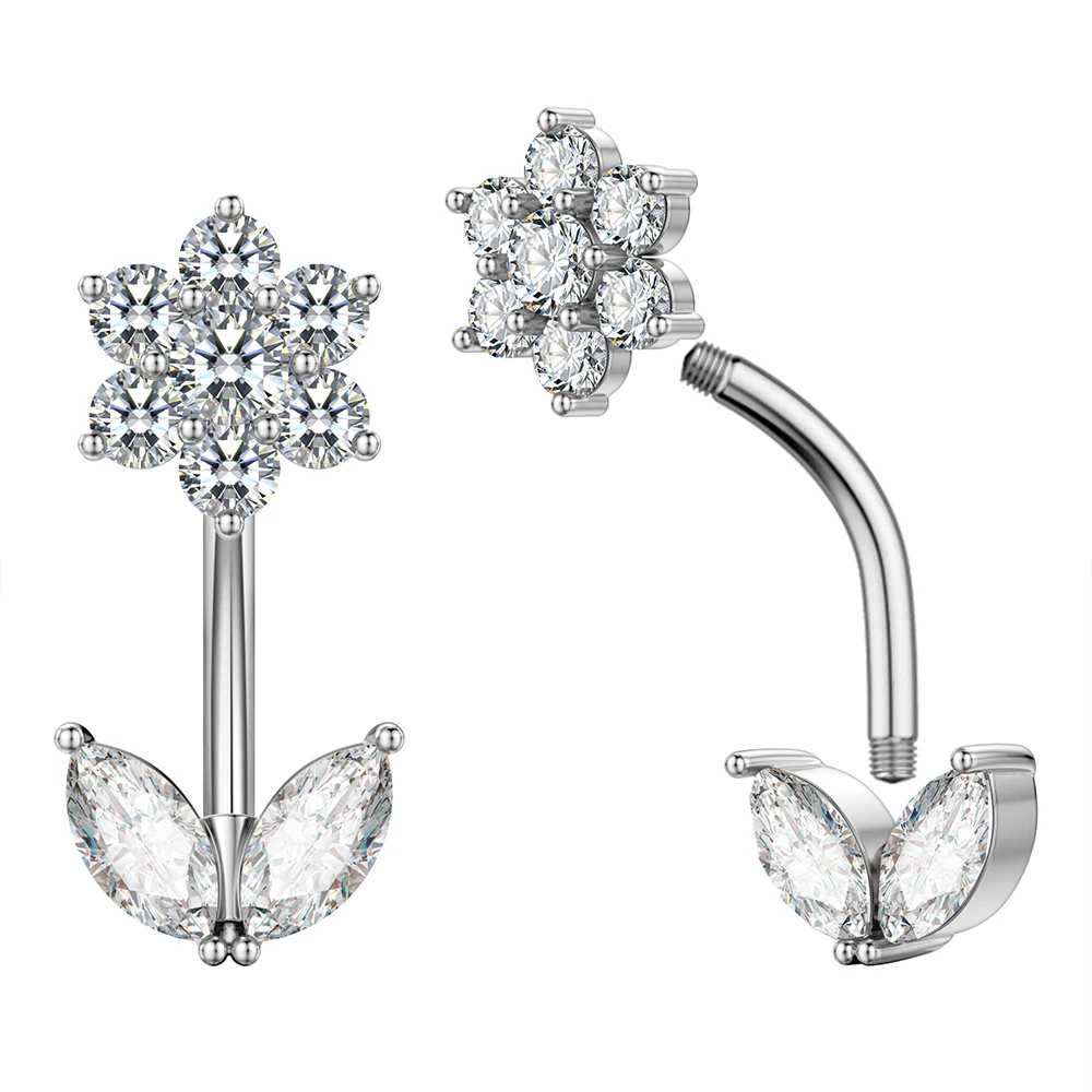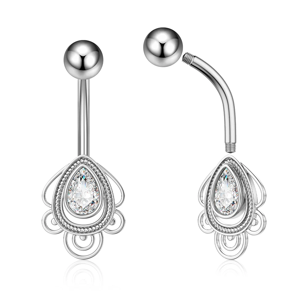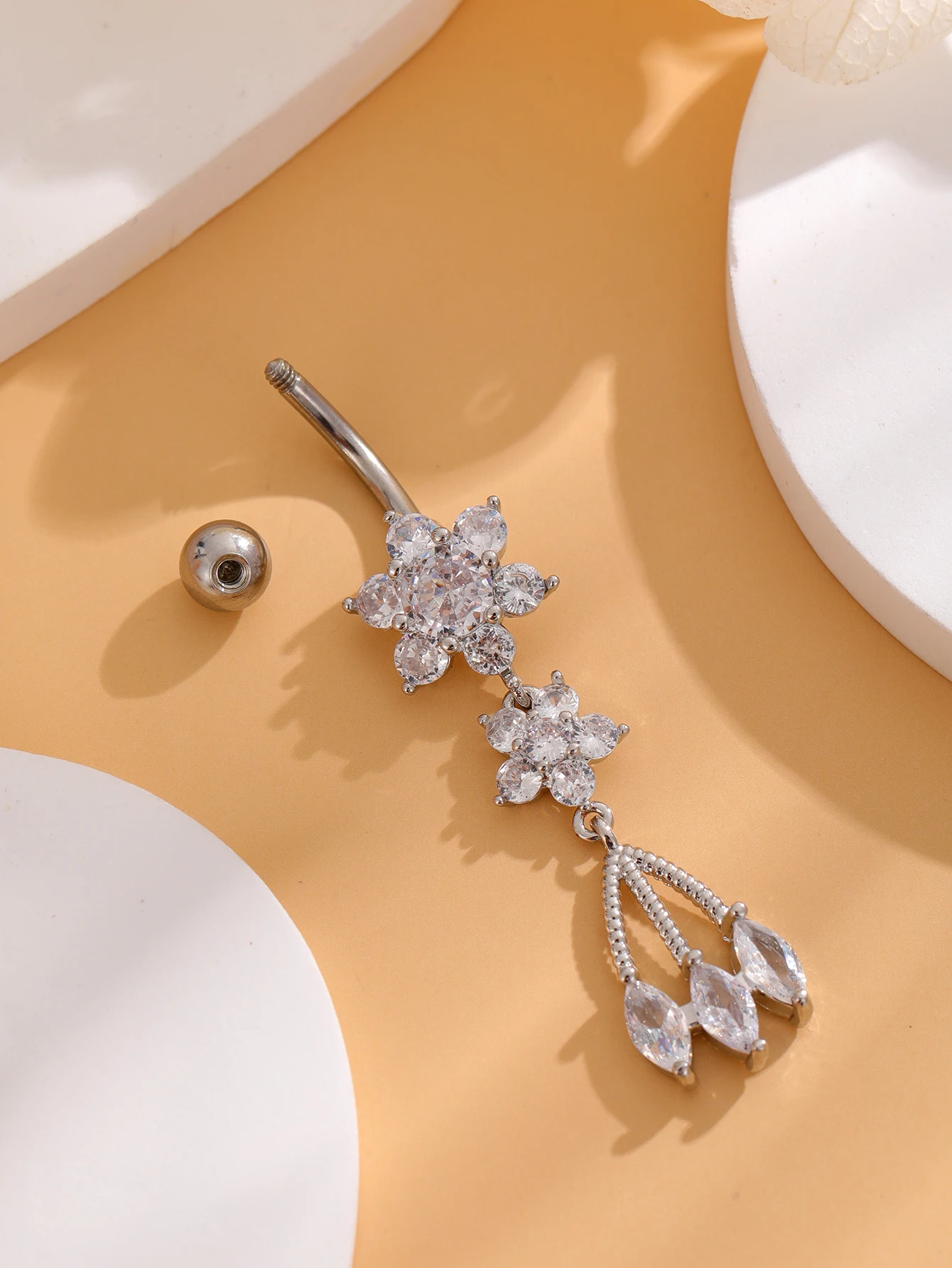 14G Heart Flower Shaped Navel Piercing Ornament Water Drop Belly Button Piercing Pendant Belly Nombril Piercing Women Jewelry