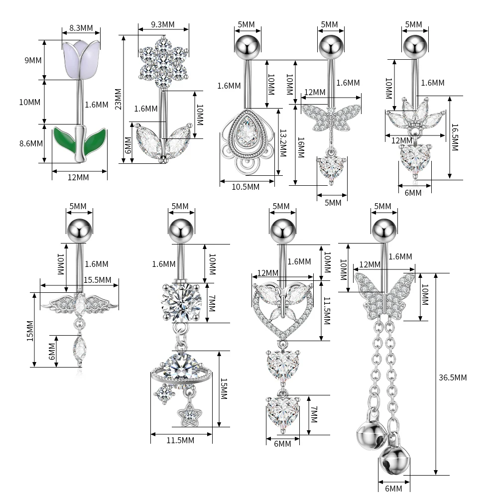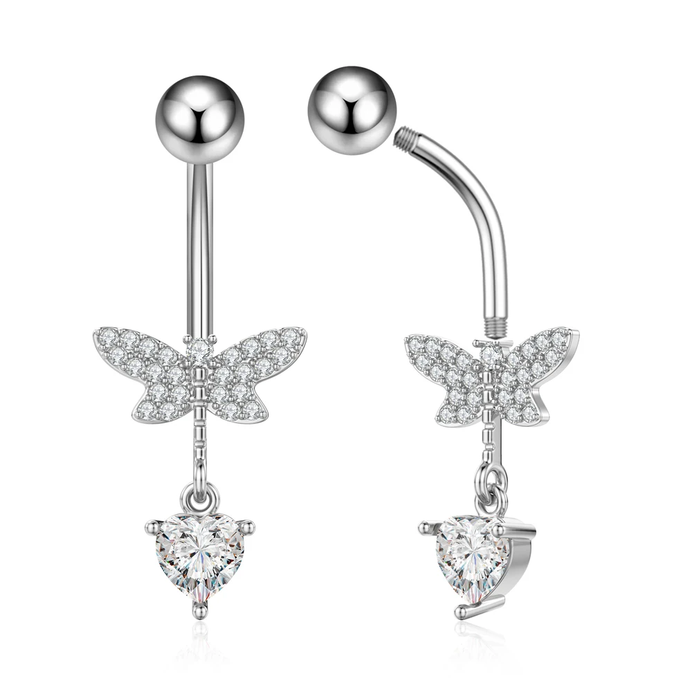 Type: Flower Butterfly Wing Water-drop Zircon Hanging Belly Button Ring