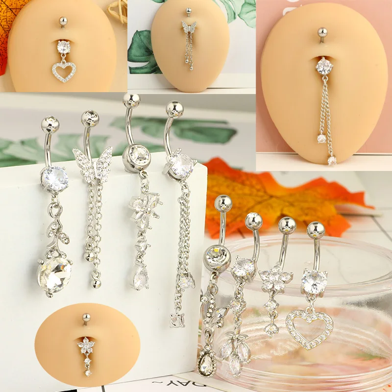 1pc Long Dangle Belly Button Rings Stainless Steel Crystal Navel Rings Belly Piercings Nombril Ombligo Women Men Body Jewelry