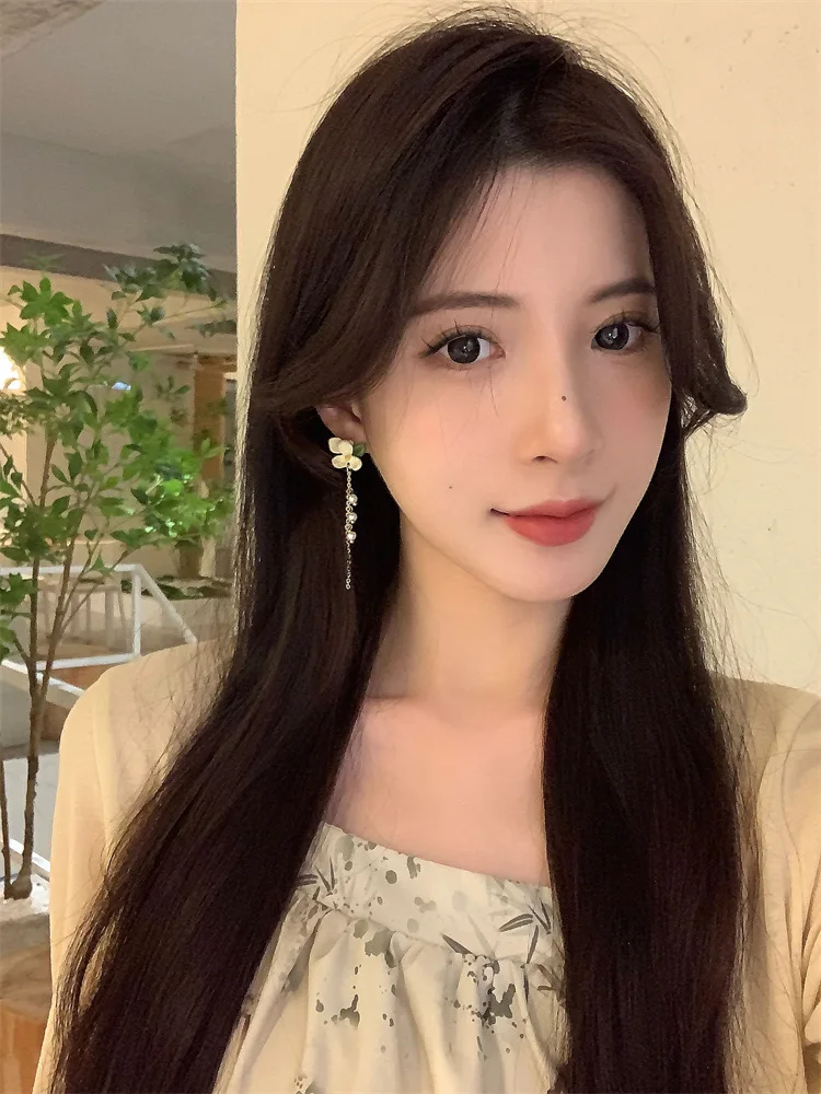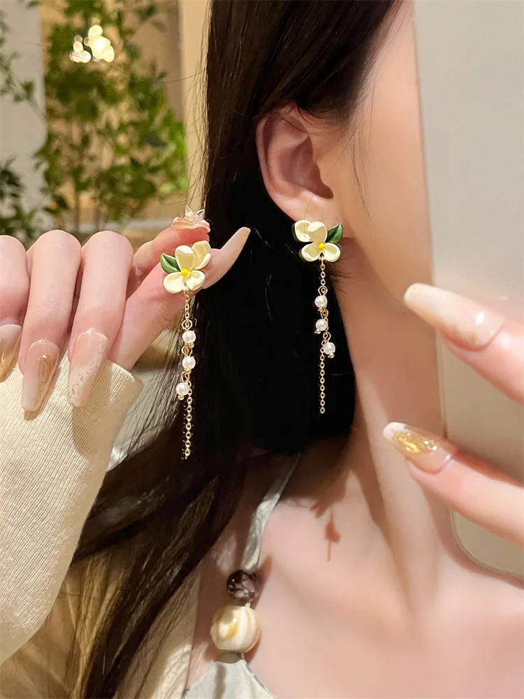 2023 New Gentle Sweet Cute Gardenia Drop Earrings French White Flower Long Pearl Tassel Earrings for Women Party Jewelry Gifts