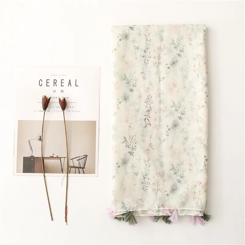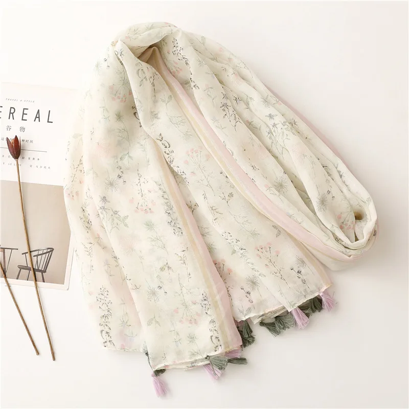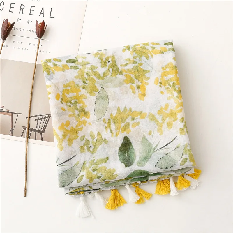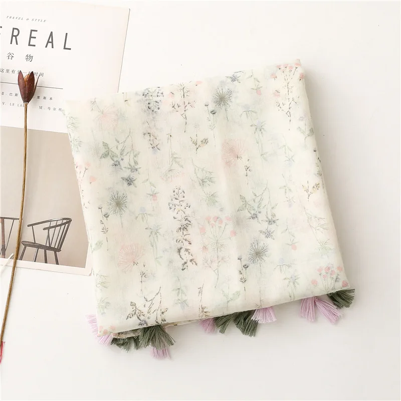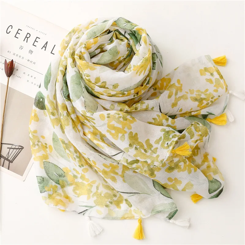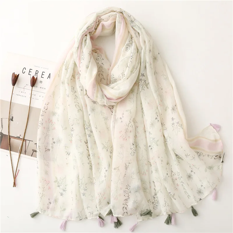 2023 Fashion Luxury Ink Painting Floral Tassel Viscose Shawl Scarf Lady High Quality Wrap Pashmina Stole Bufandas Muslim Hijab