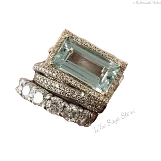 2025 New Fashion Three Piece Set Blue Square Zircon Rings For Women Party Idea Gifts Custom Jewelry