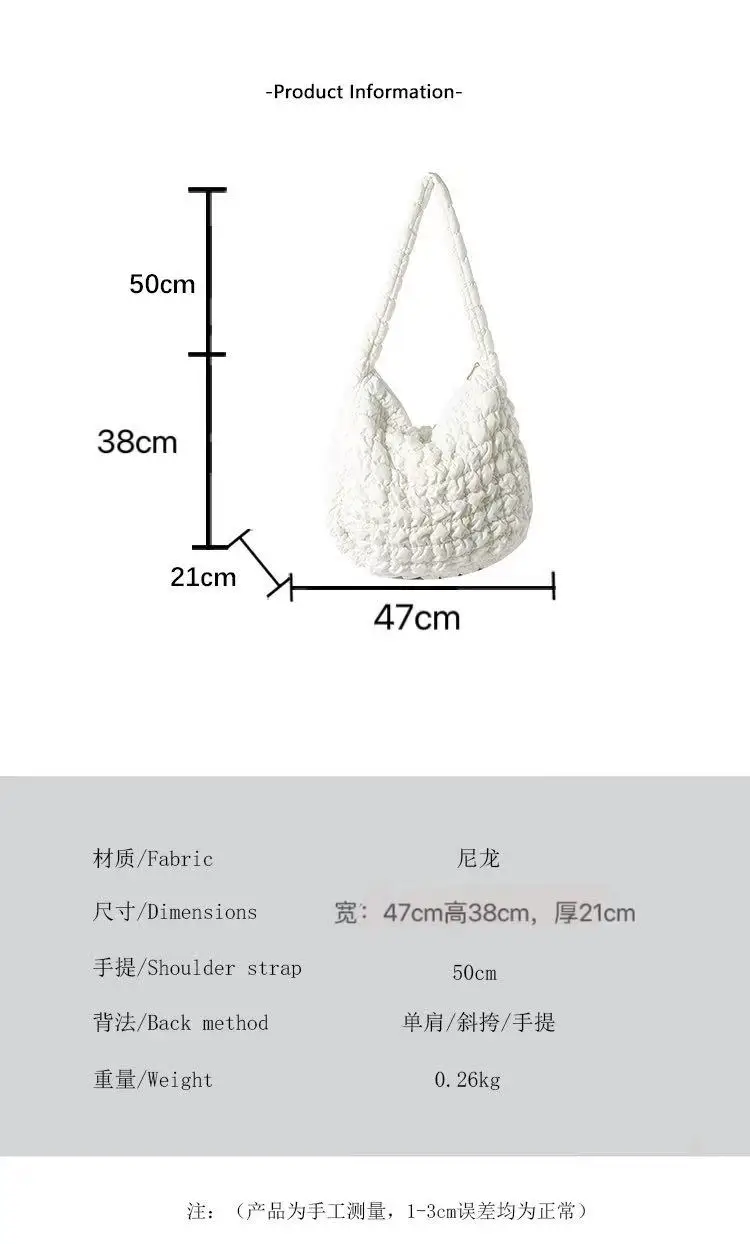 2025 Niche Design Pleated Cloud Bag For Women Large Capacity Shoulder Crossbody Bag Nylon Tote Bag Ladies Handbags