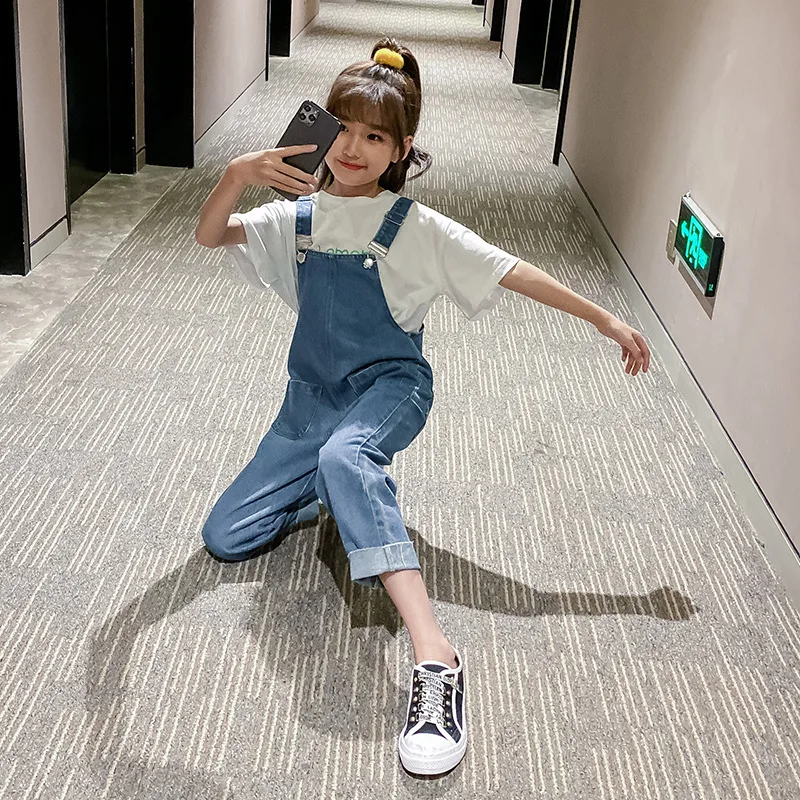 2025 summer Kids Overalls Jeans for Girls Children Denim Jumpsuit Pockets spring Teens lady miss Suspender Trousers 5 9 12 year