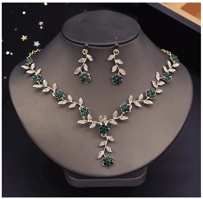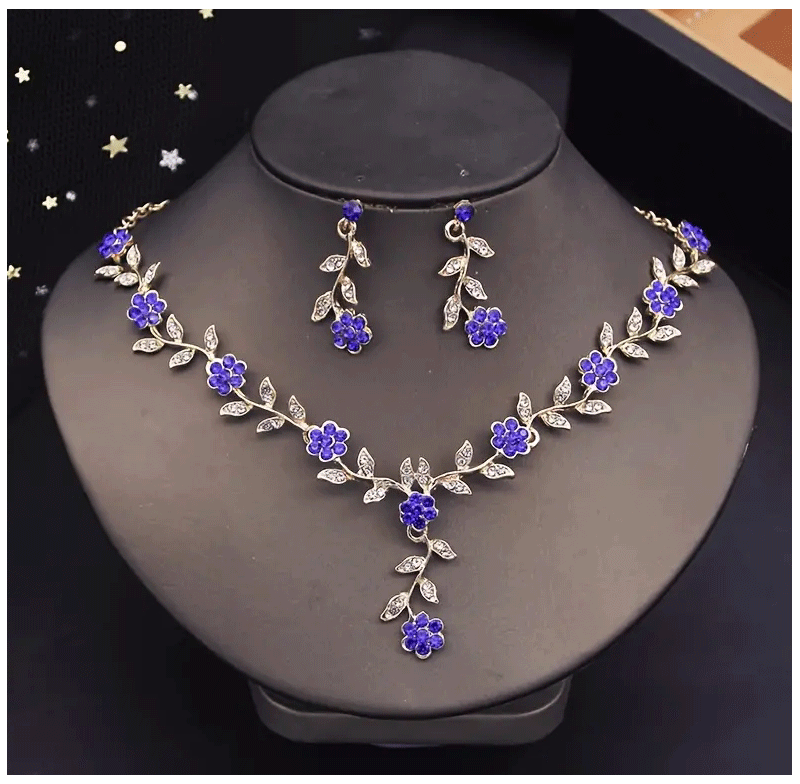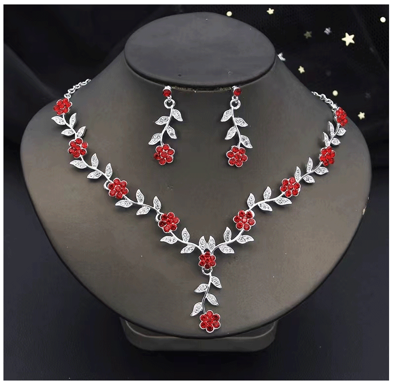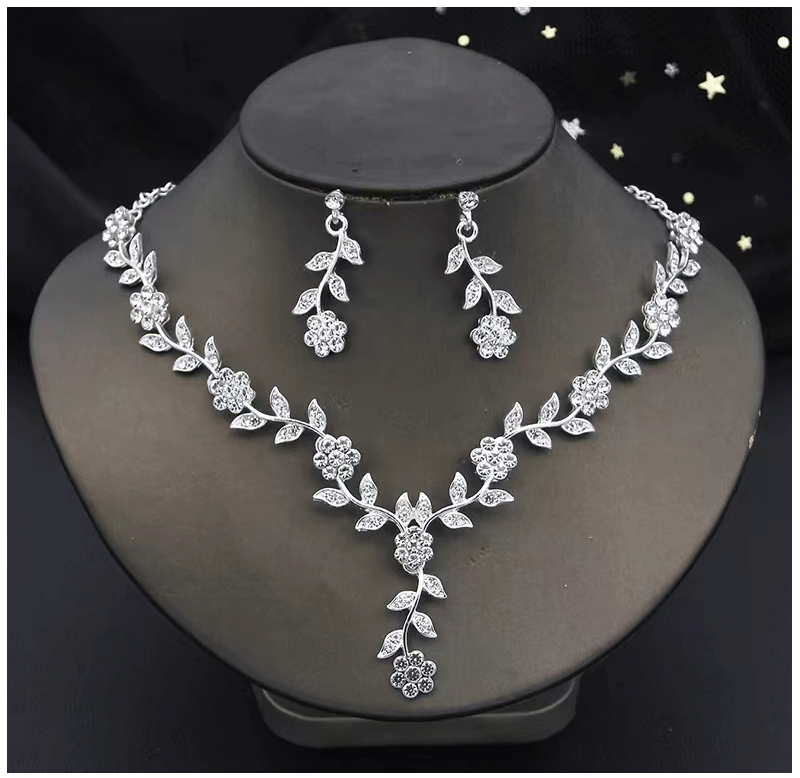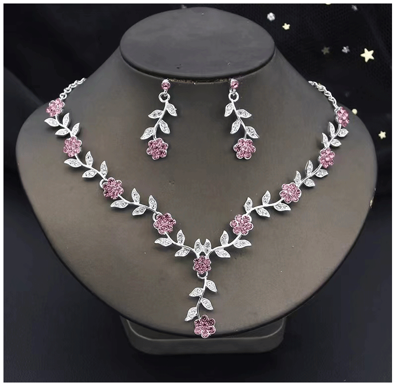 3 Pcs Sweet Jewelry Set Exquisite Rhinestone Pendant Banquet Party Women Fashion Romantic Crystal Necklace Earring Accessory Set