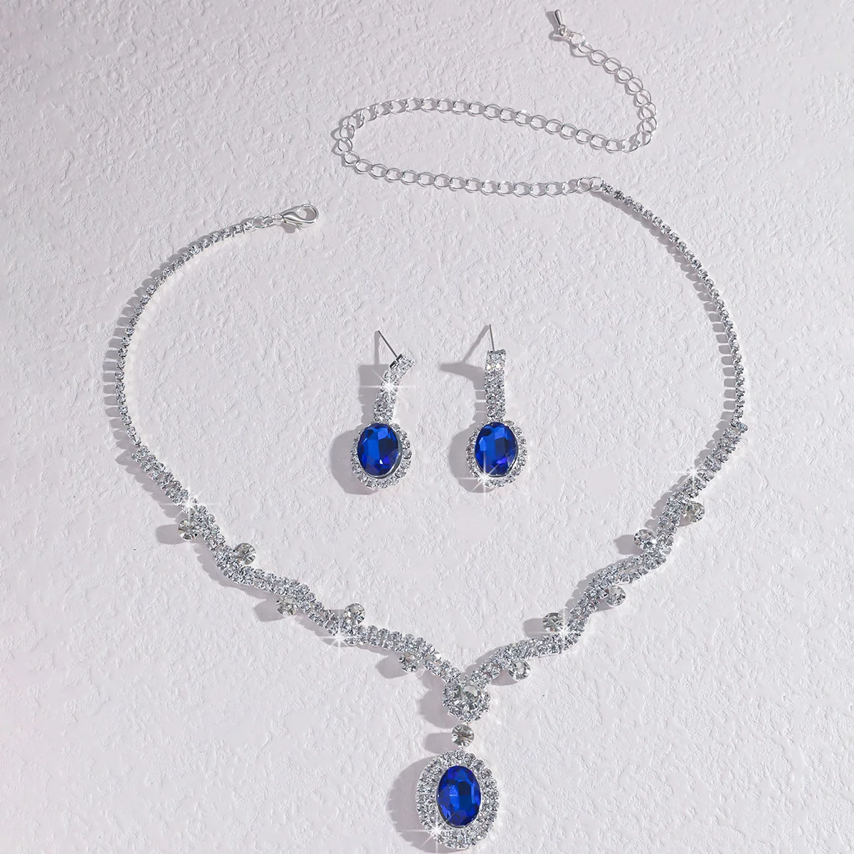 3PC Women's Fashion Geometric Round Necklace Earrings Jewelry Set Wedding Banquet Party Holiday Gifts