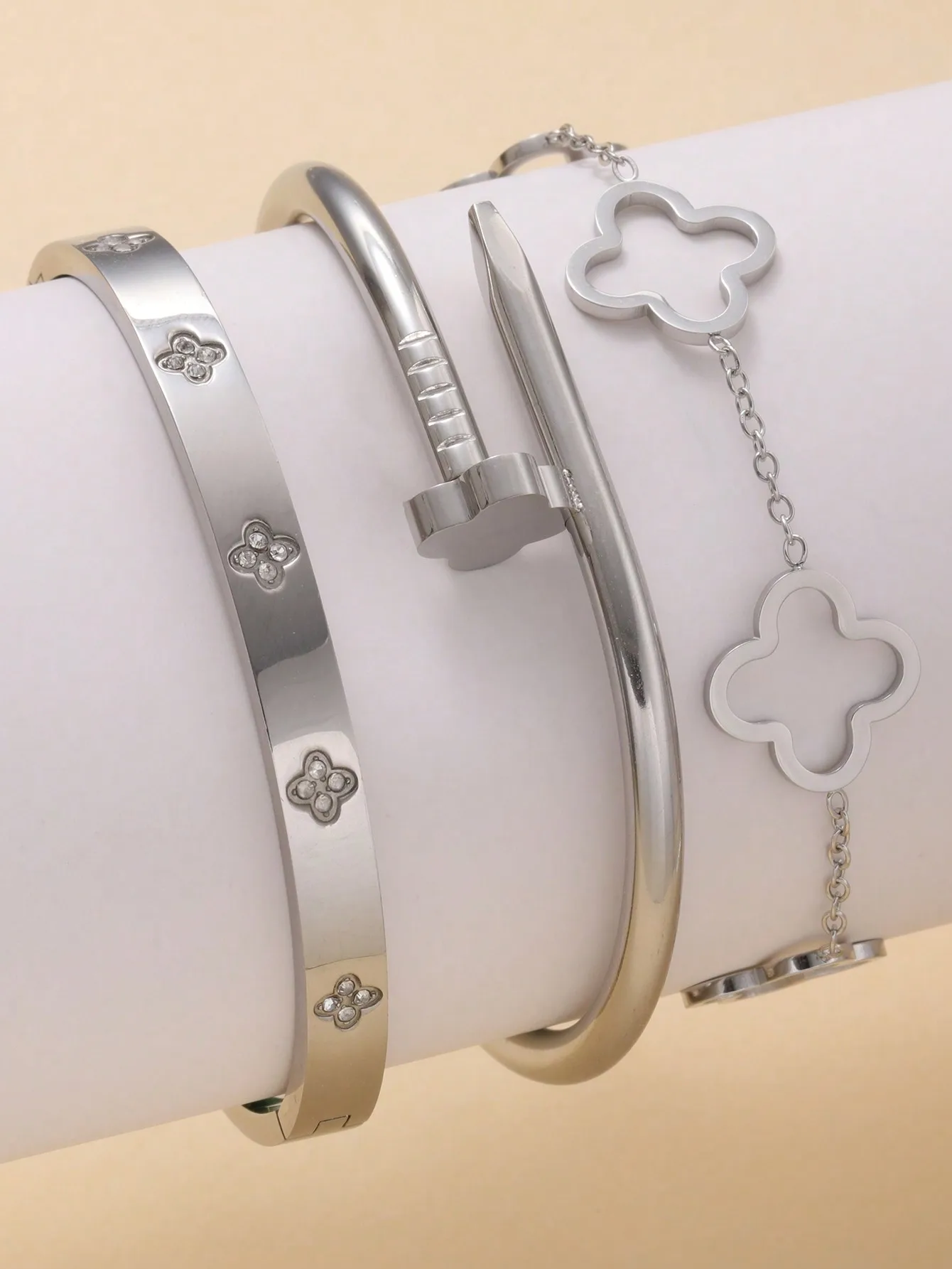 3PCS French Lucky Clover Women's Bracelet Set High Quality Stainless Steel Hot Selling Bracelet Charm Feeling Jewelry Gift RAKOL