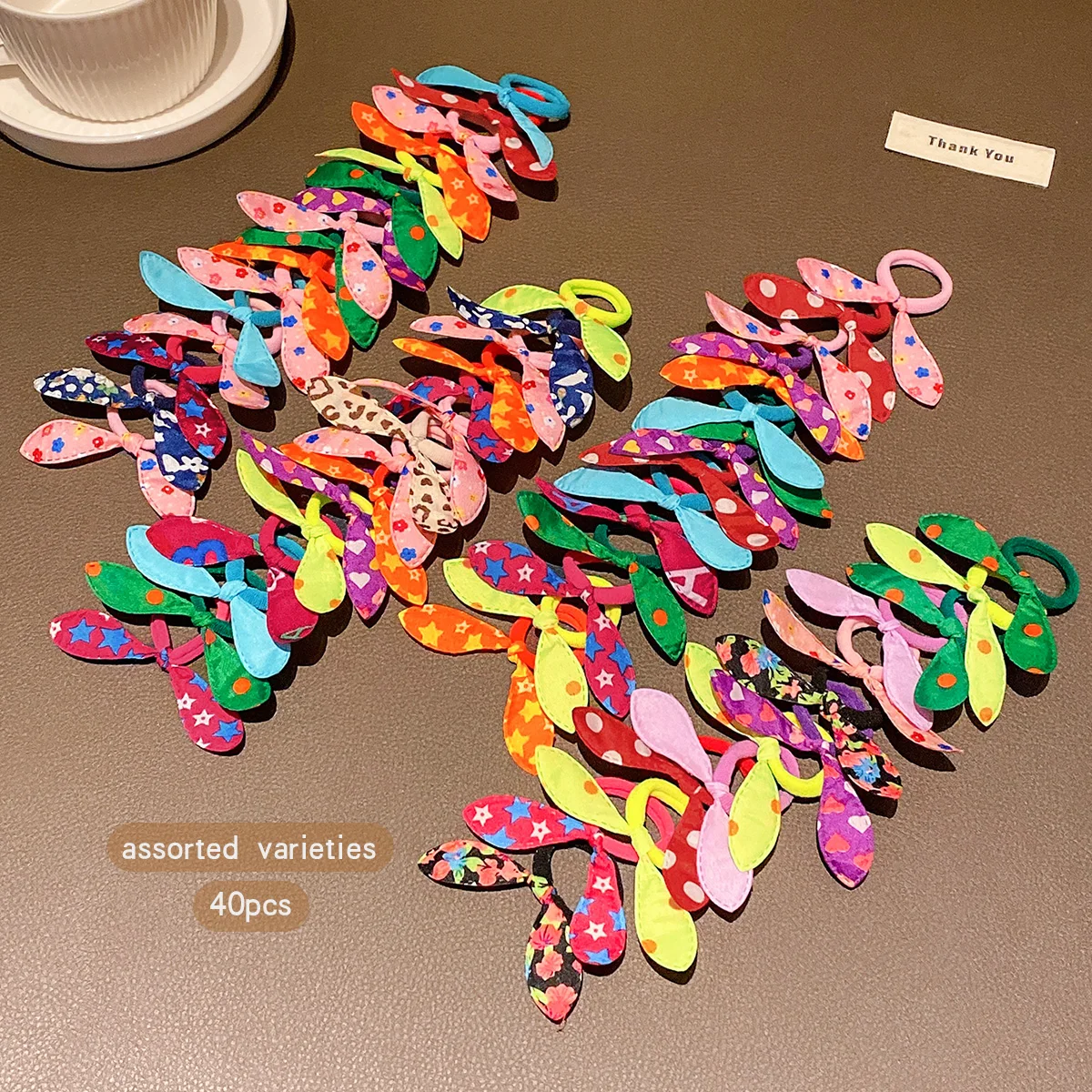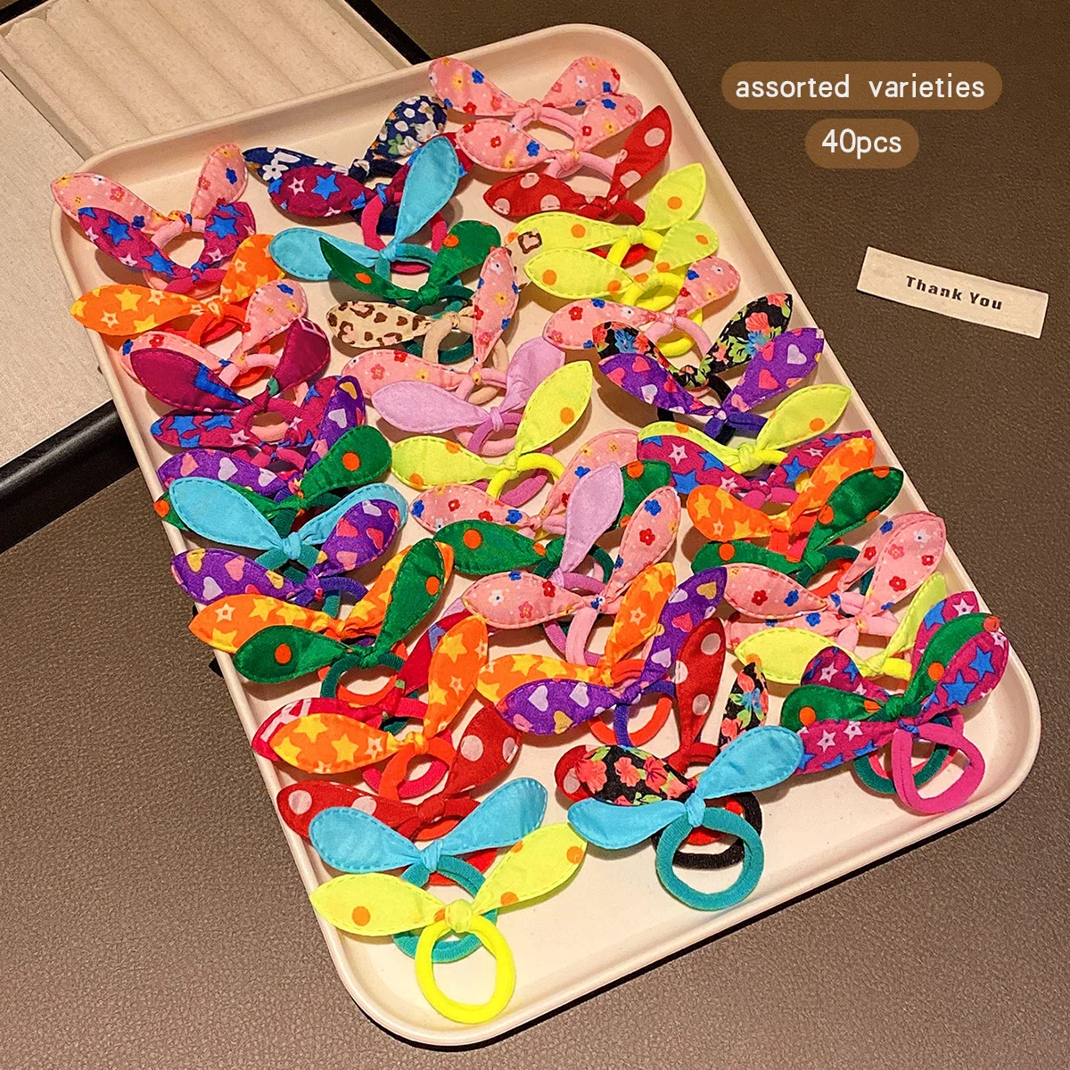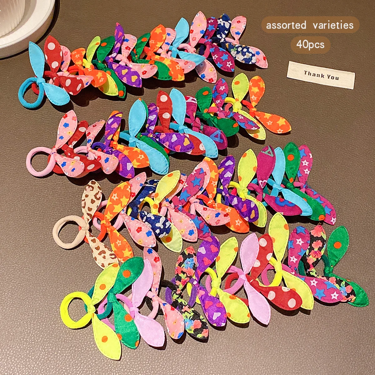 40 cute colorful random rabbit ear hair rings with sweet and windy rubber bands suitable for daily use as hair accessories
