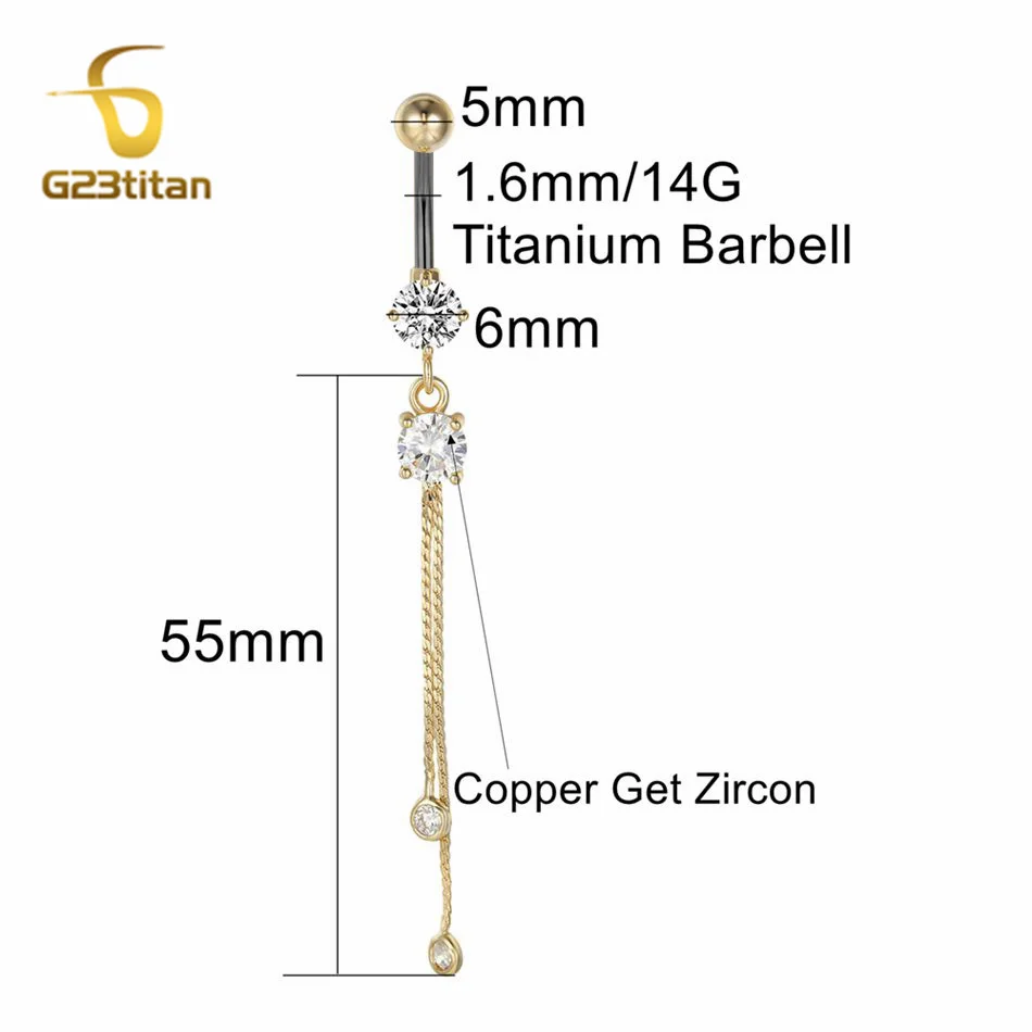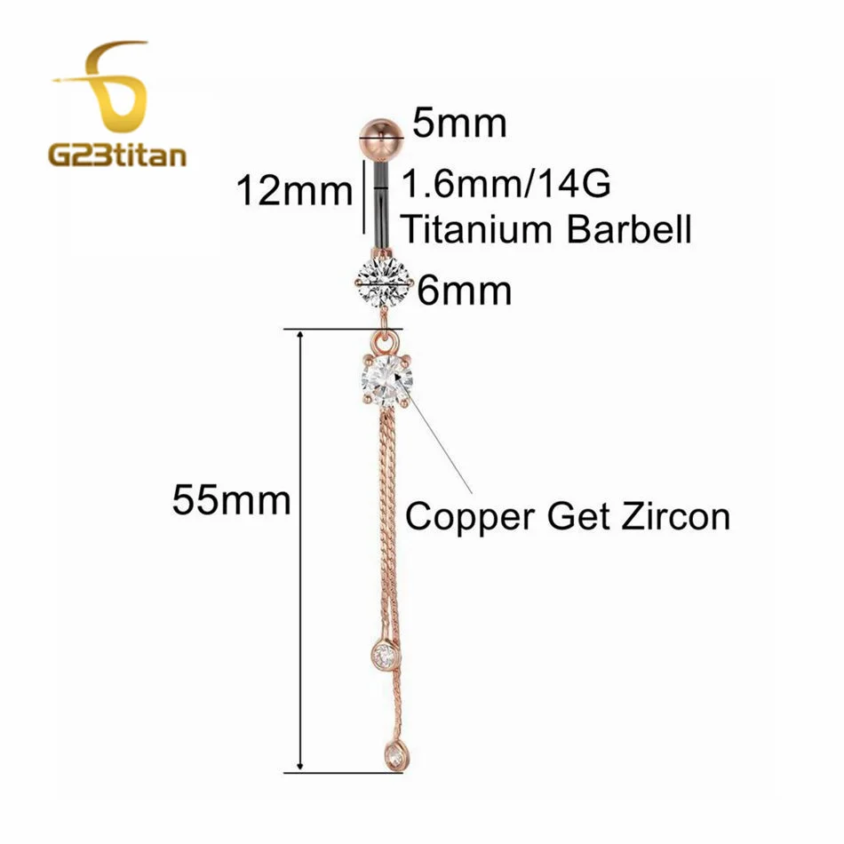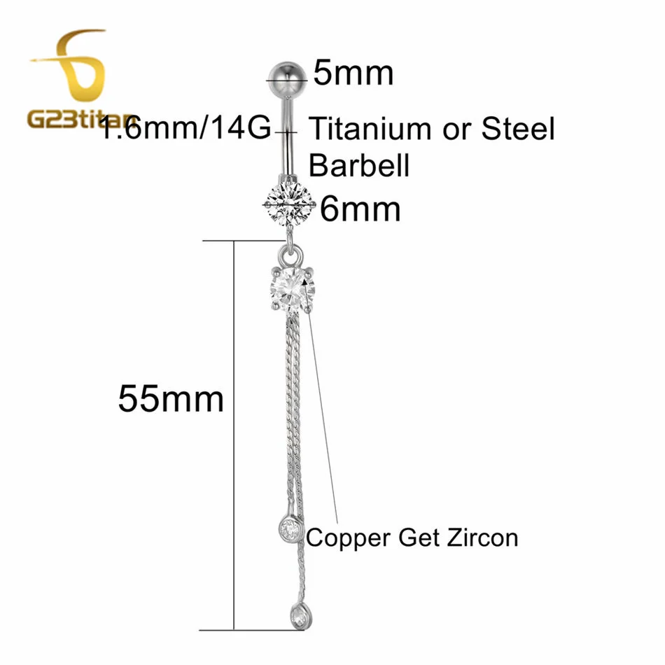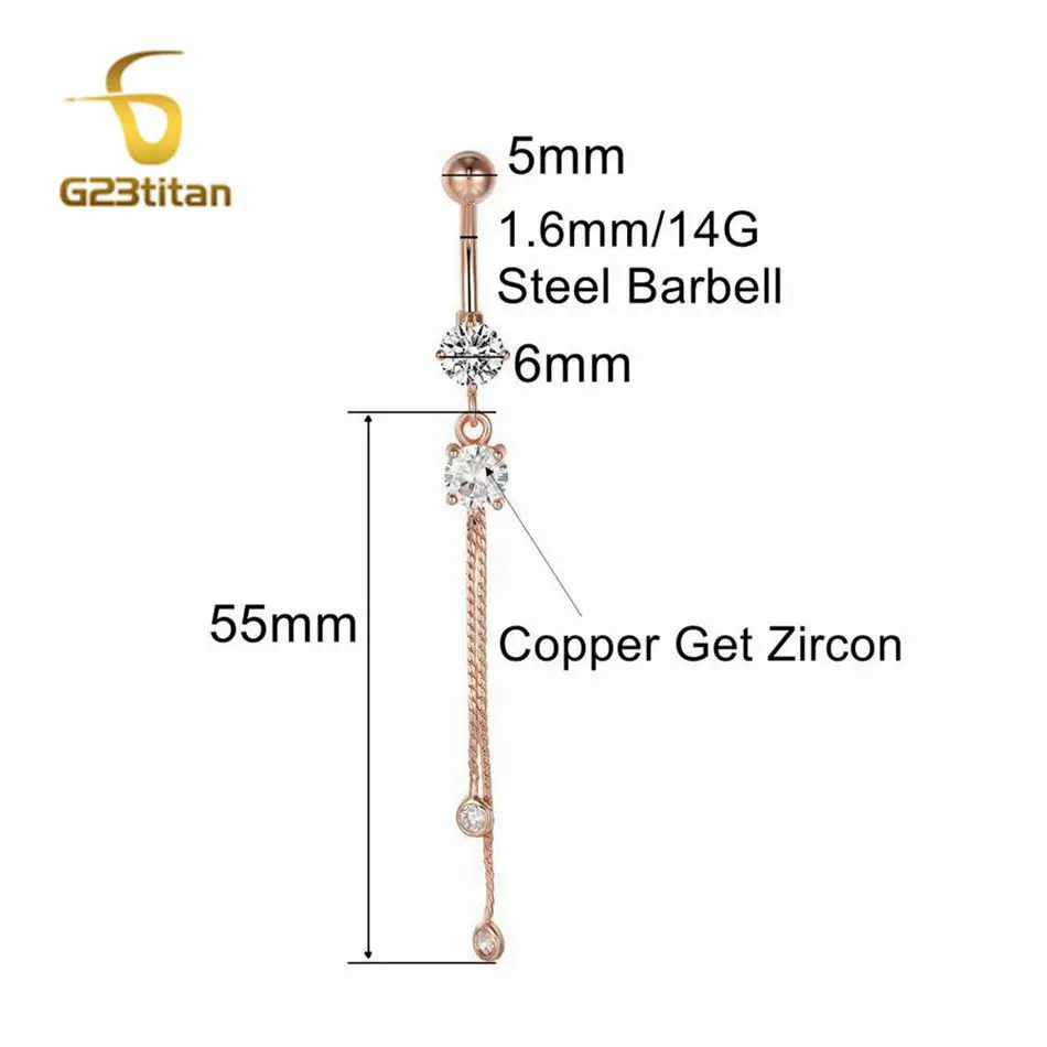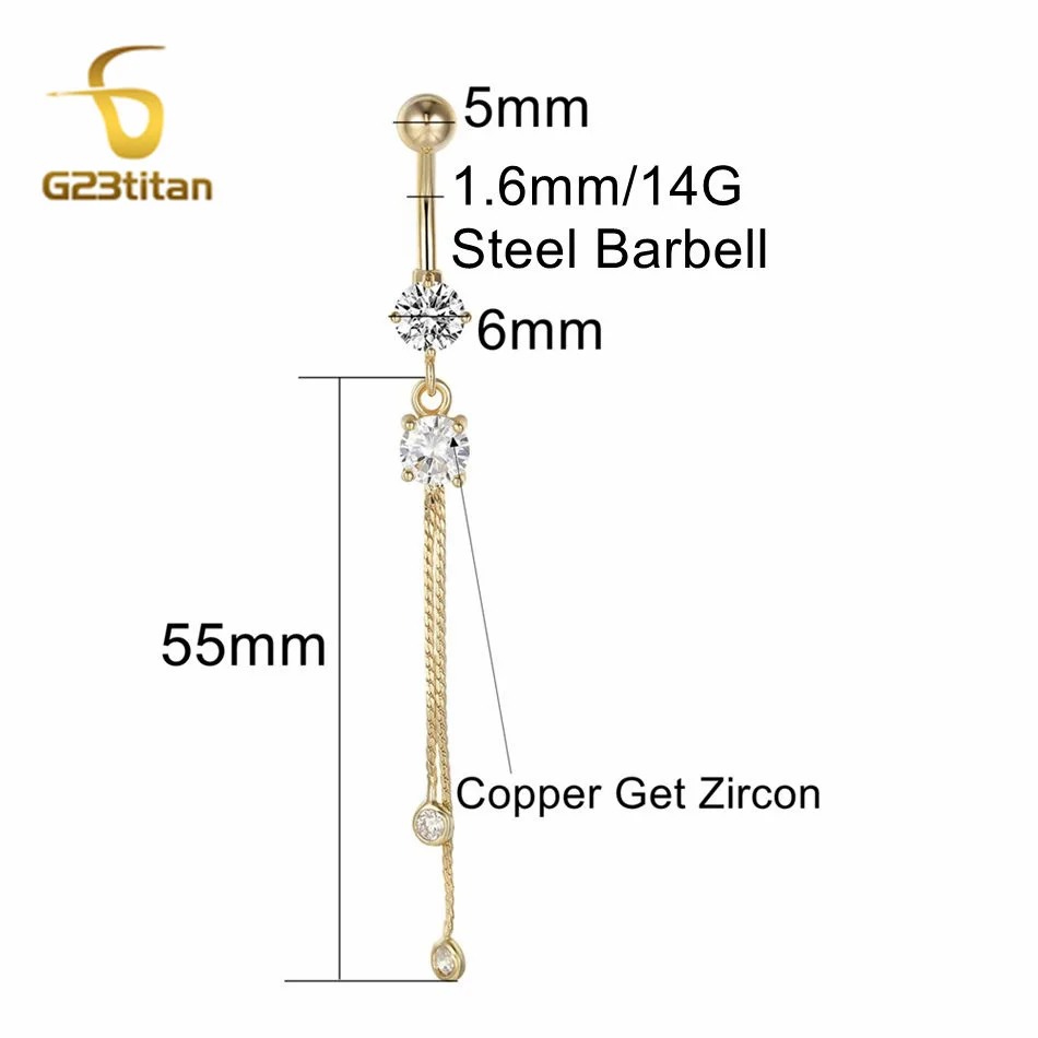 6-16mm Length Barbell Belly Button Rings Micro Inlaid CZ Zircon Crown Pendant Navel Bar Piercing Anti Allergic Women's Jewelry