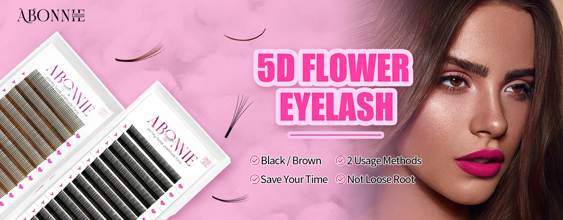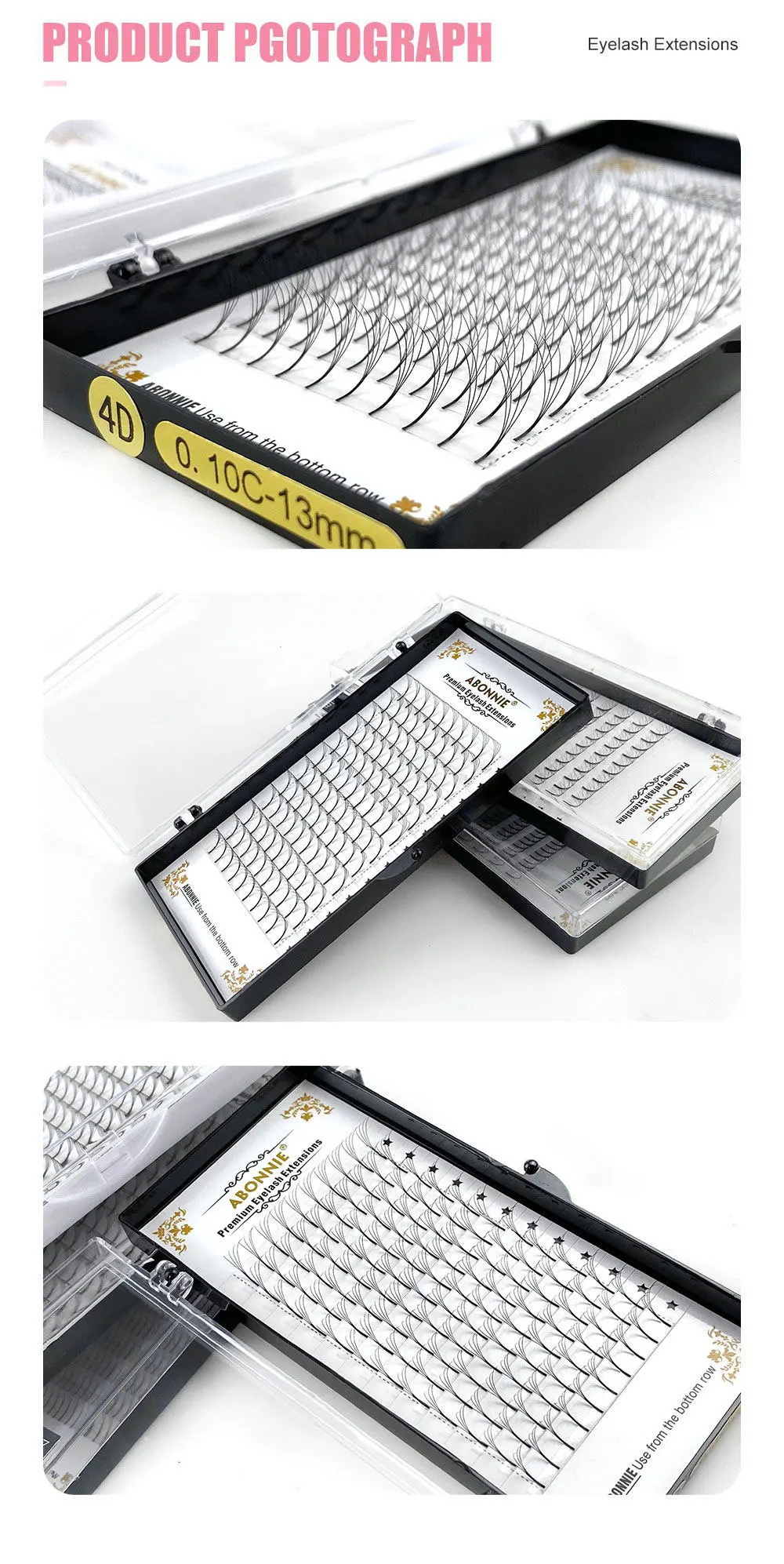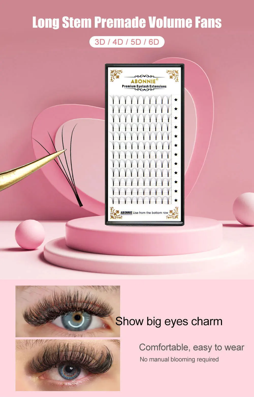 Abonnie Russian Volume Eyelash Extensions Eyelash Bouquets Volume Long Stem Soft Matte Black Premade Extension