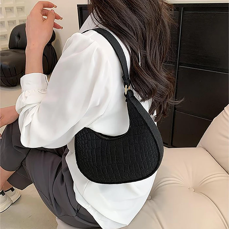 Advanced Candy Color Women's Handbags; Fashionable Textured Felt Armpit Bags; Sophisticated Crescent Shoulder Purse Design