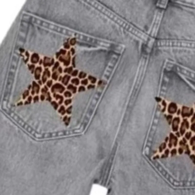 American Leopard Patchwork Eclectic Waif Jeans Y2K Harajuku Street Washed Pockets Denim Trouser Women Casual Grunge 2000s Pants
