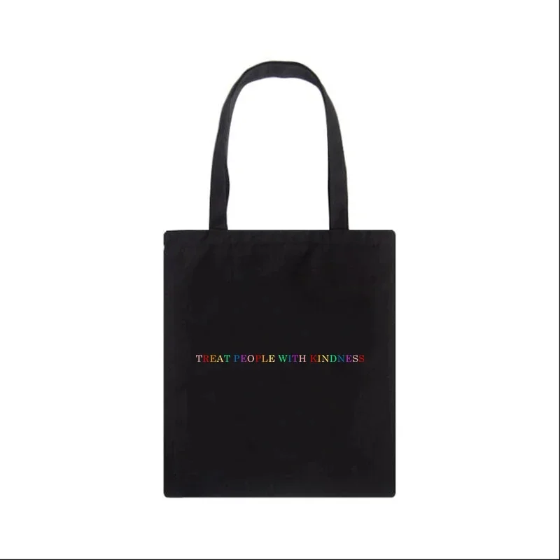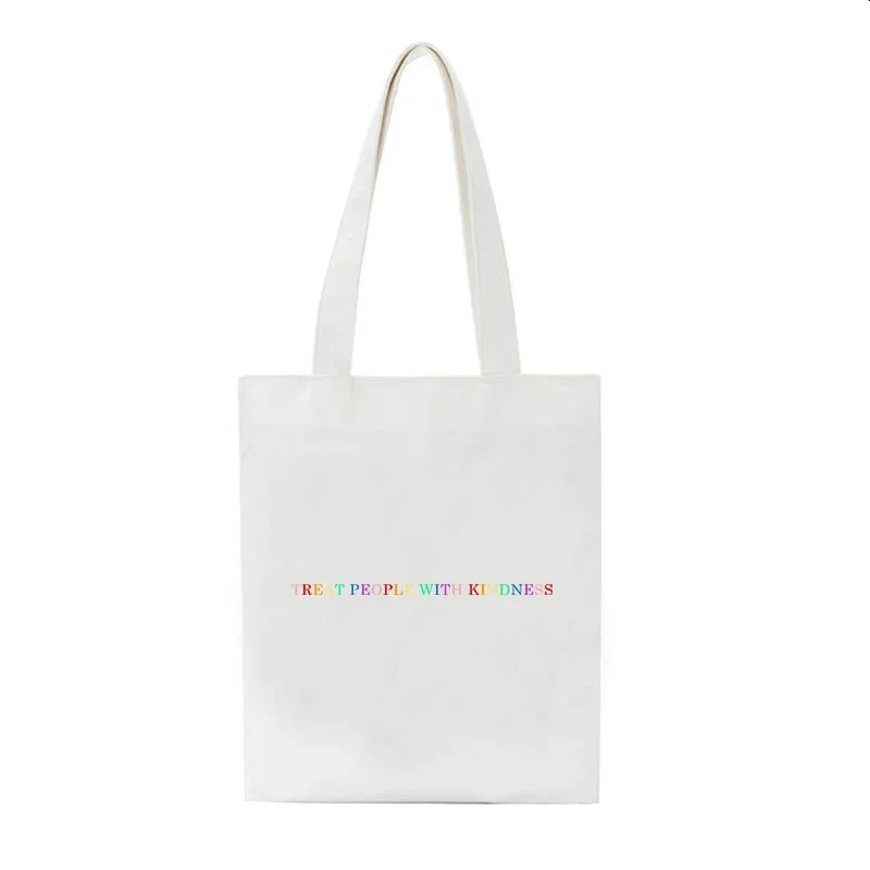 Casual Large Capacity Shoulder Bags Canvas Treat people with kindness letter Harajuku Print Ulzzang Fun Vintage Handbags
