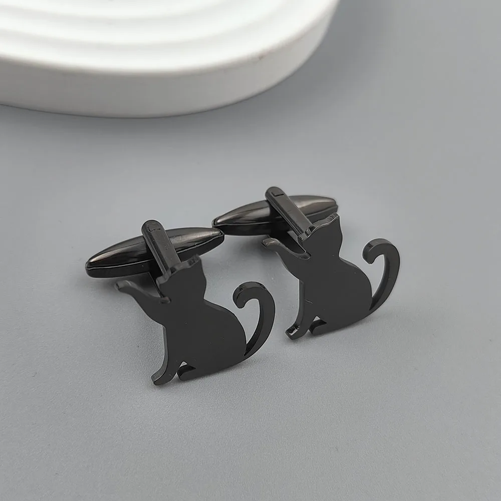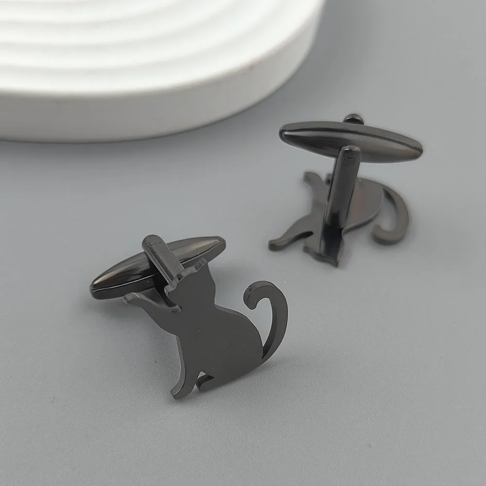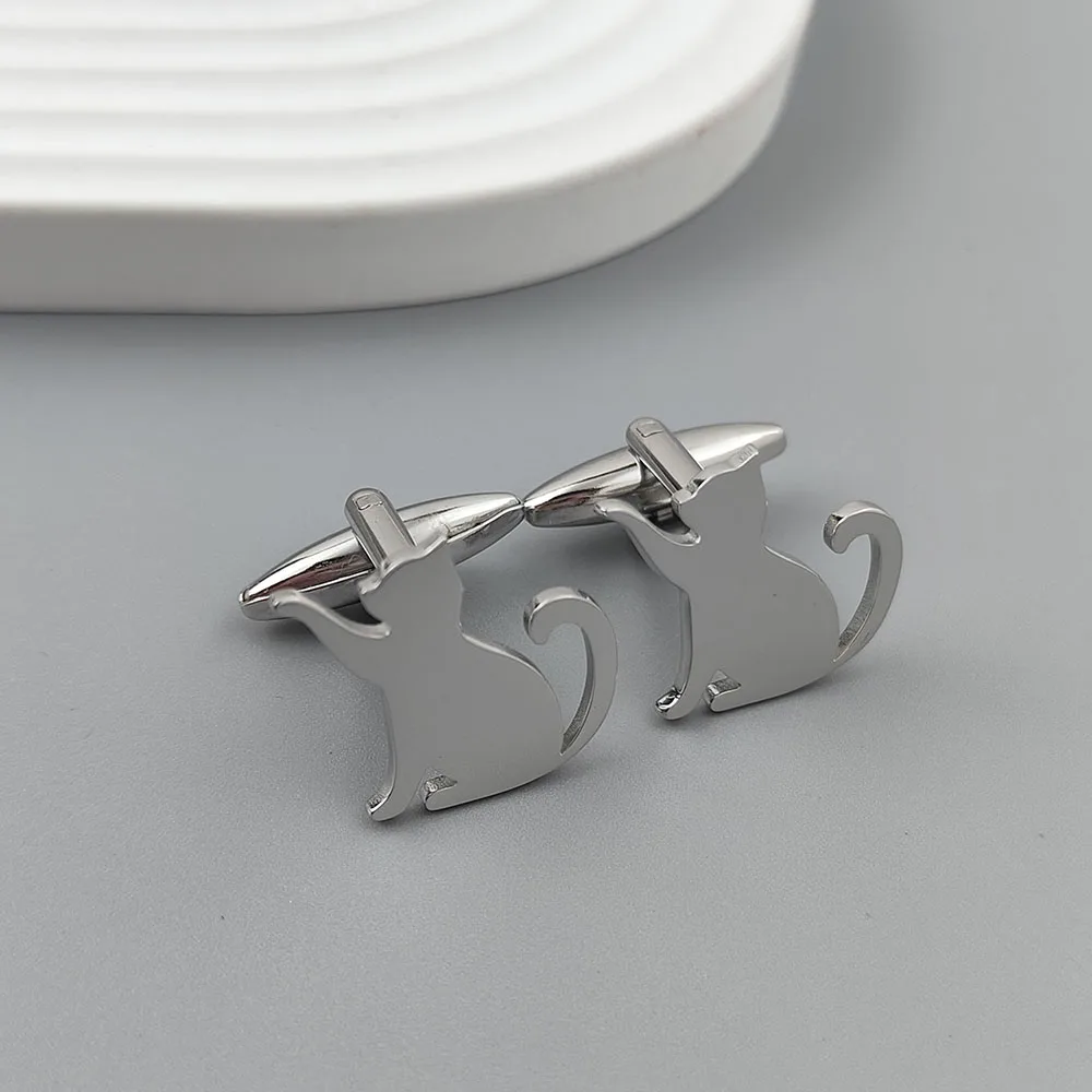 Charming punk kitten stainless steel 18K gold-plated cufflinks, silver French shirt buttons, suit wedding accessories