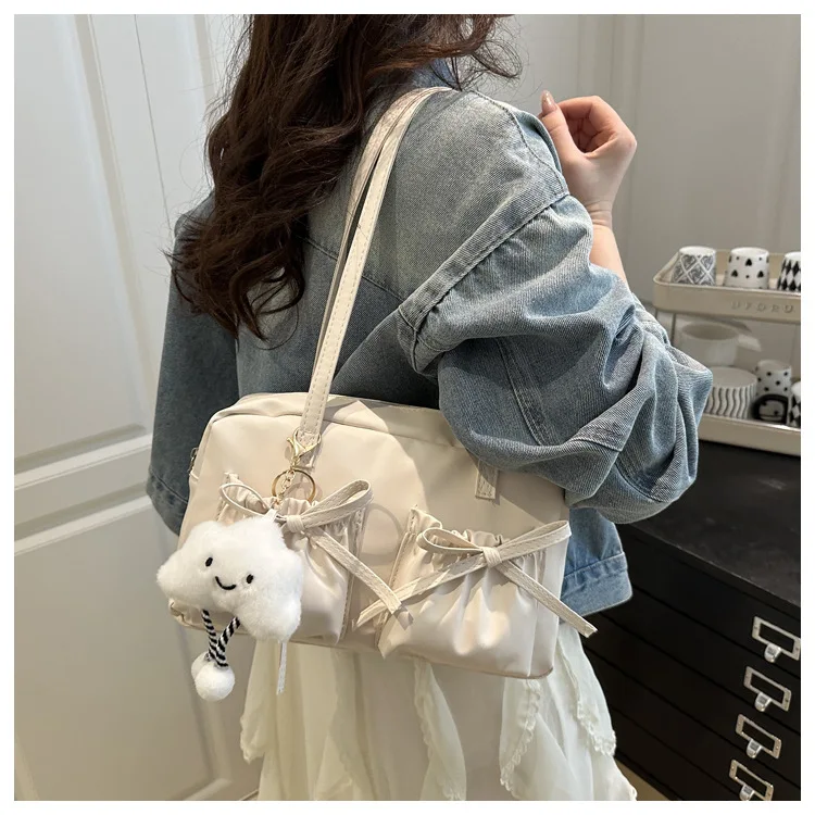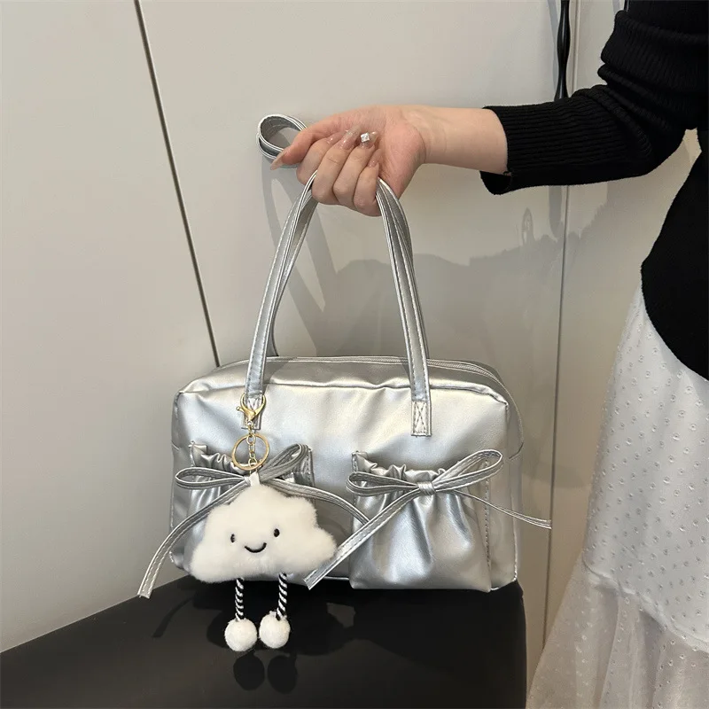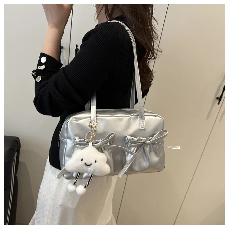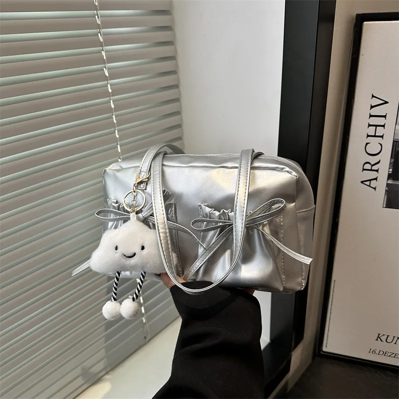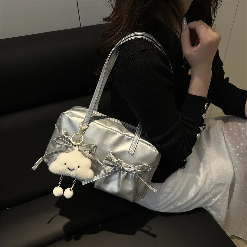 Cute Bow Tie Design Underarm Bags for Women 2025 Y2K Korean Fashion Handbags and Purses Pu Leather Shoulder Bag Designer Bag