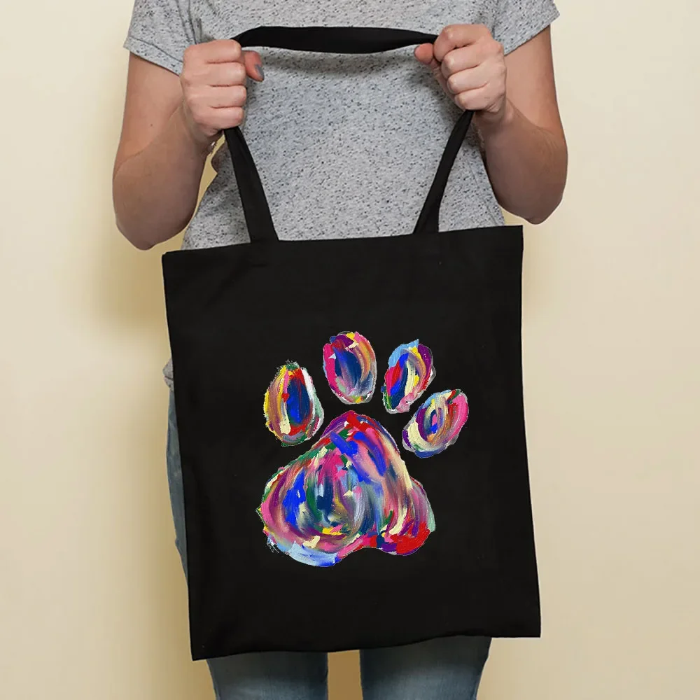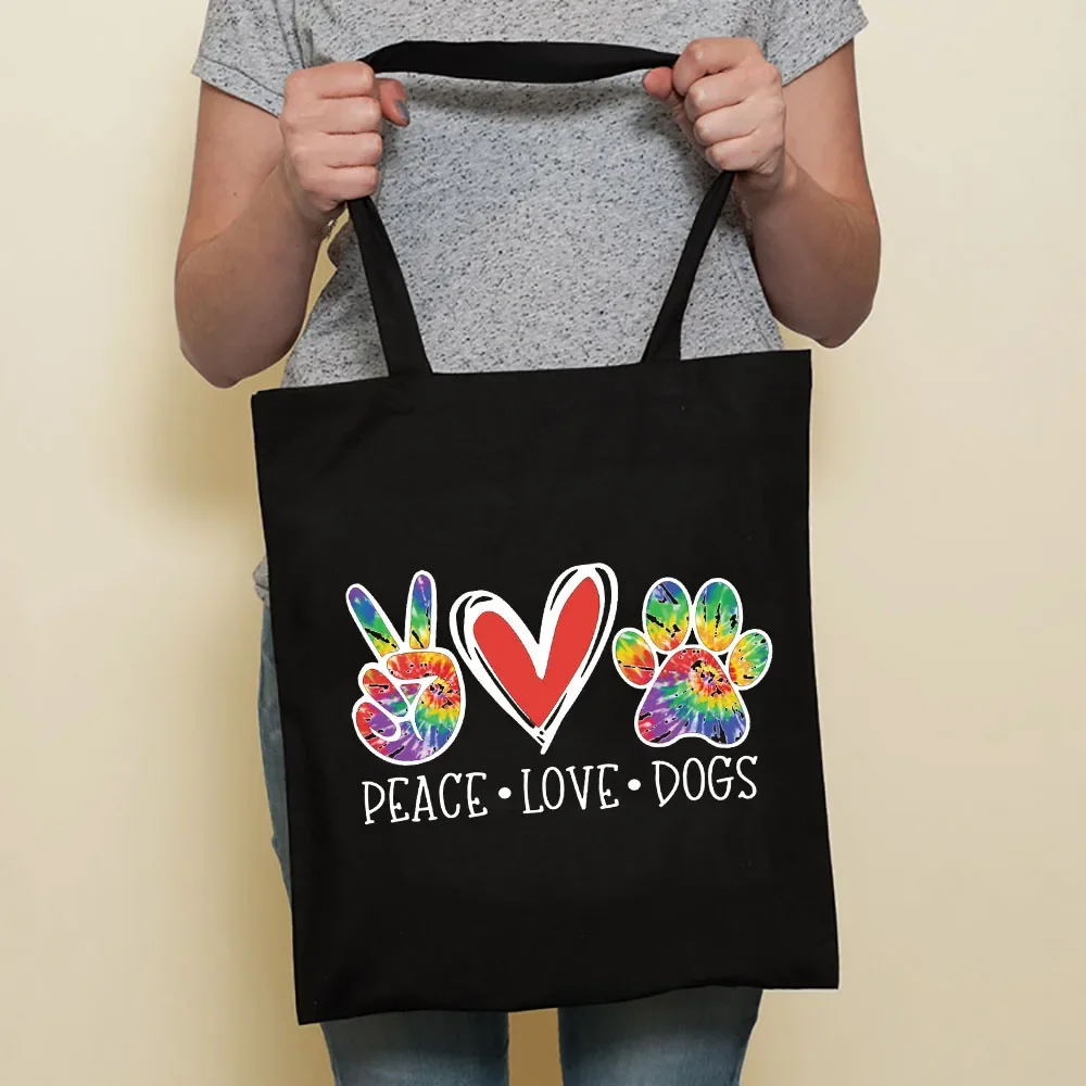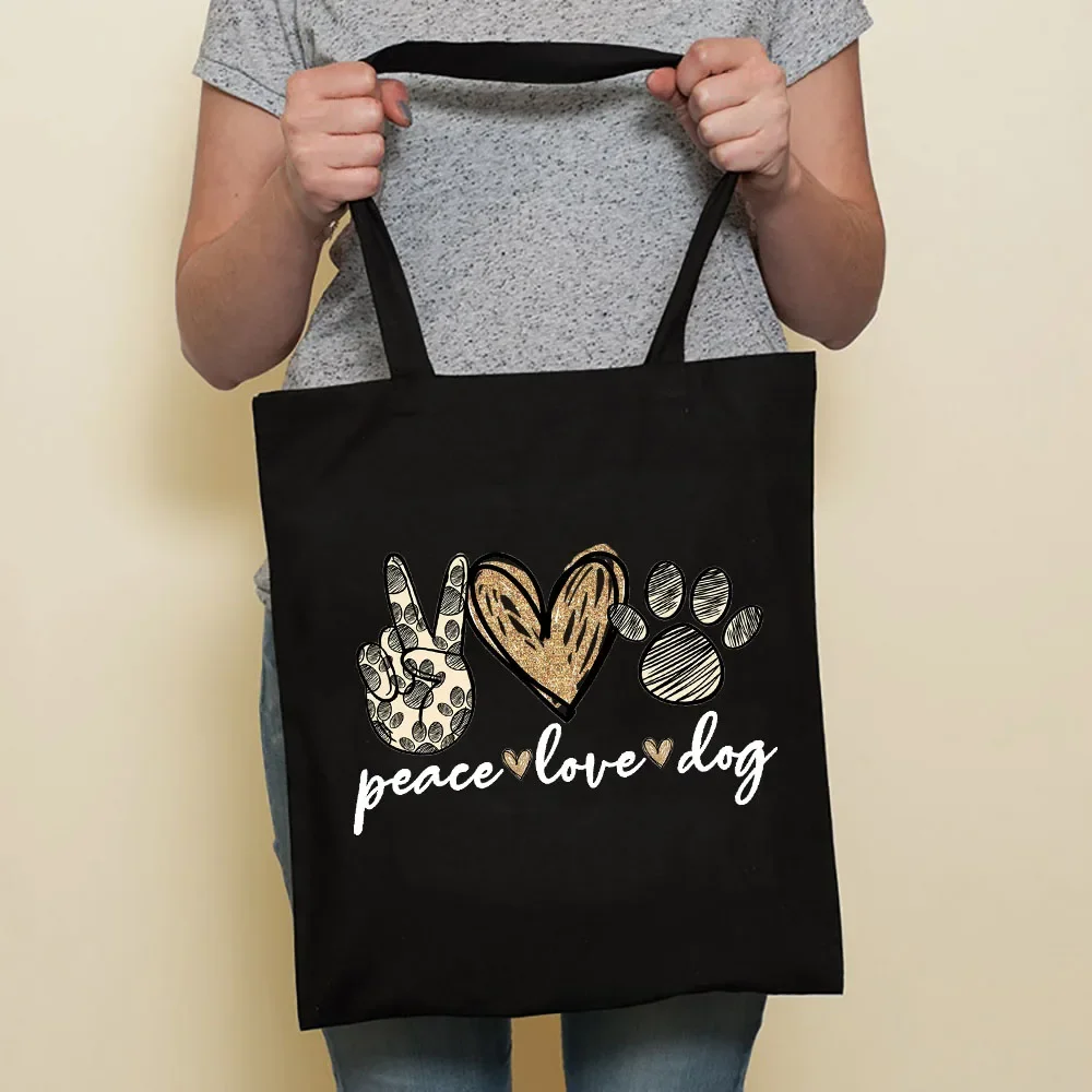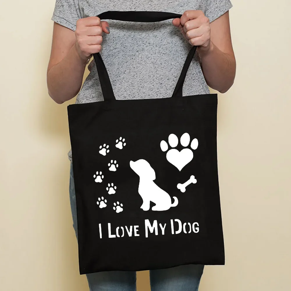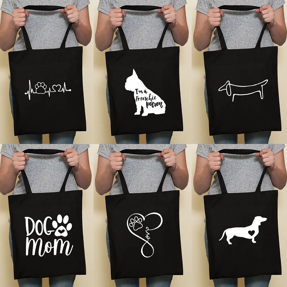 Cute Dog Harajuku Fashion Shopping Black Bags Canvas Tote Bag Bulldog Mom Dachshund Reusable Cloth Bag Handbag Shoulder Bags