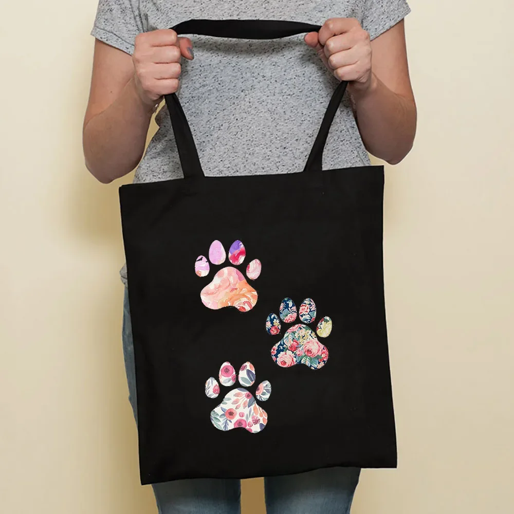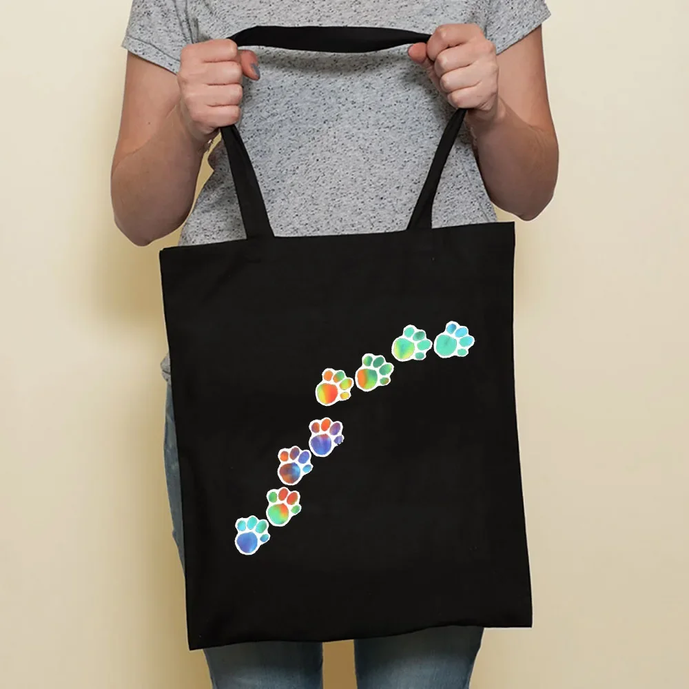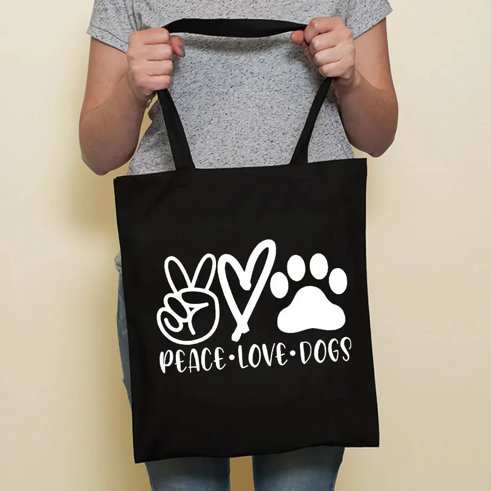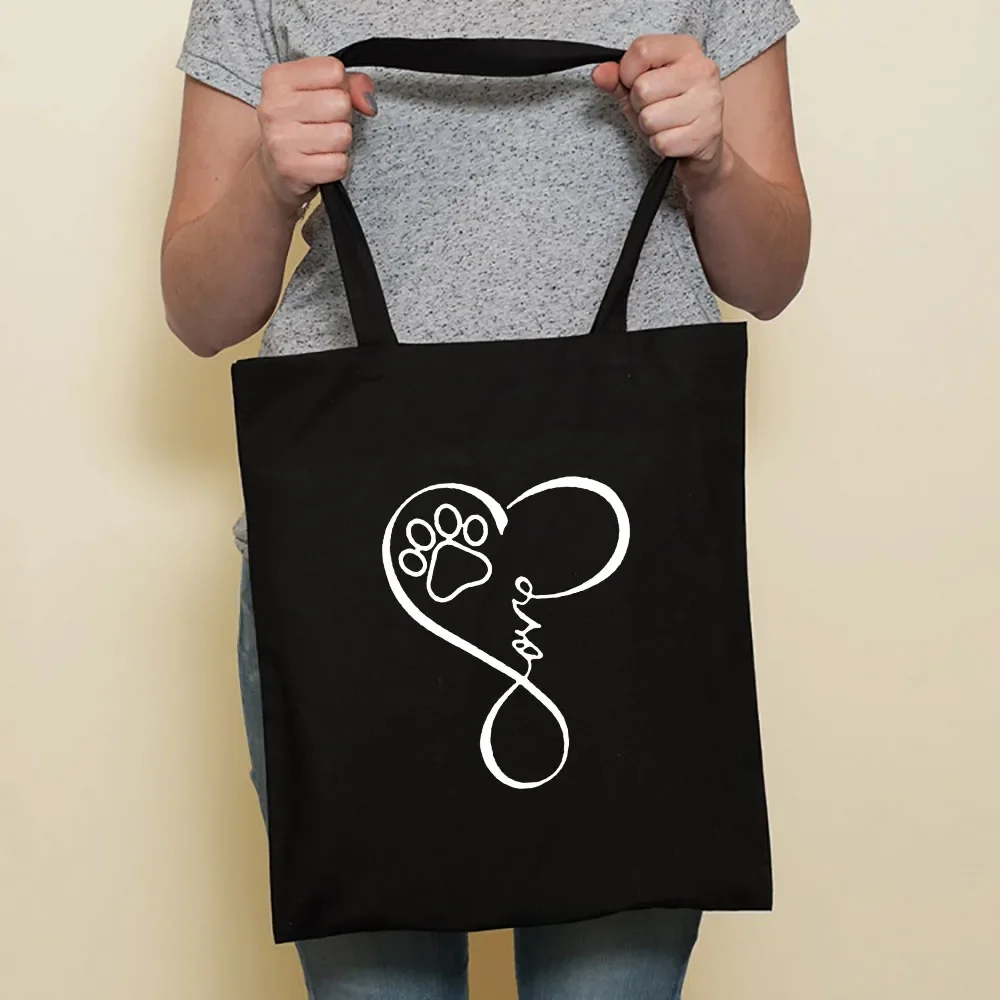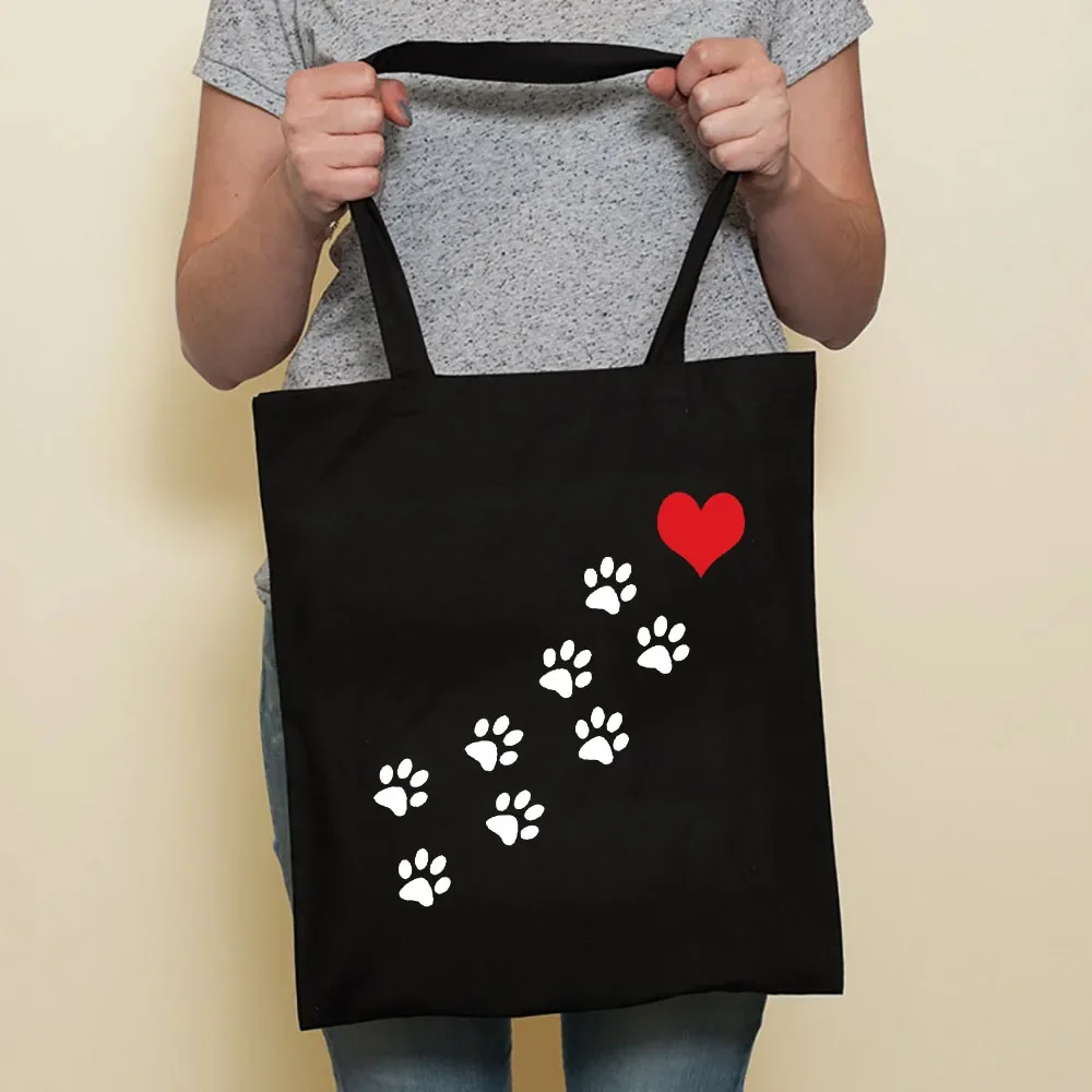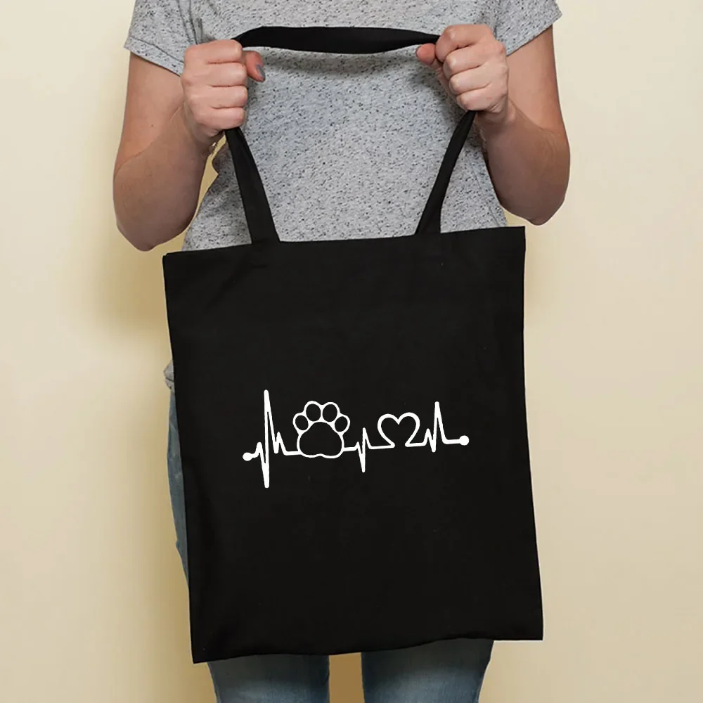 Cute Dog Harajuku Fashion Shopping Black Bags Canvas Tote Bag Bulldog Mom Dachshund Reusable Cloth Bag Handbag Shoulder Bags