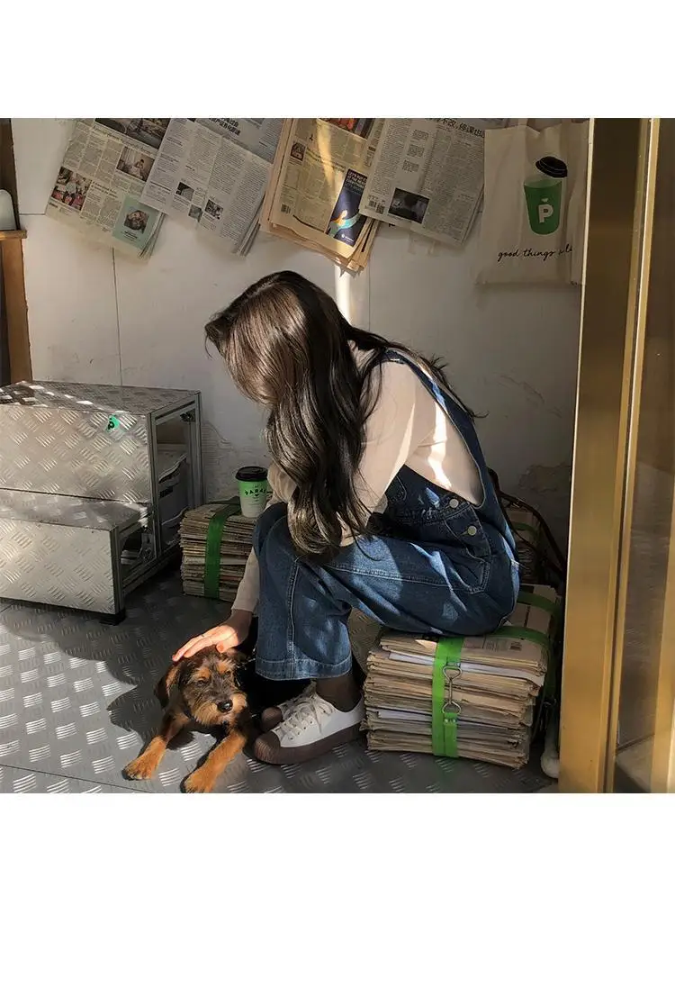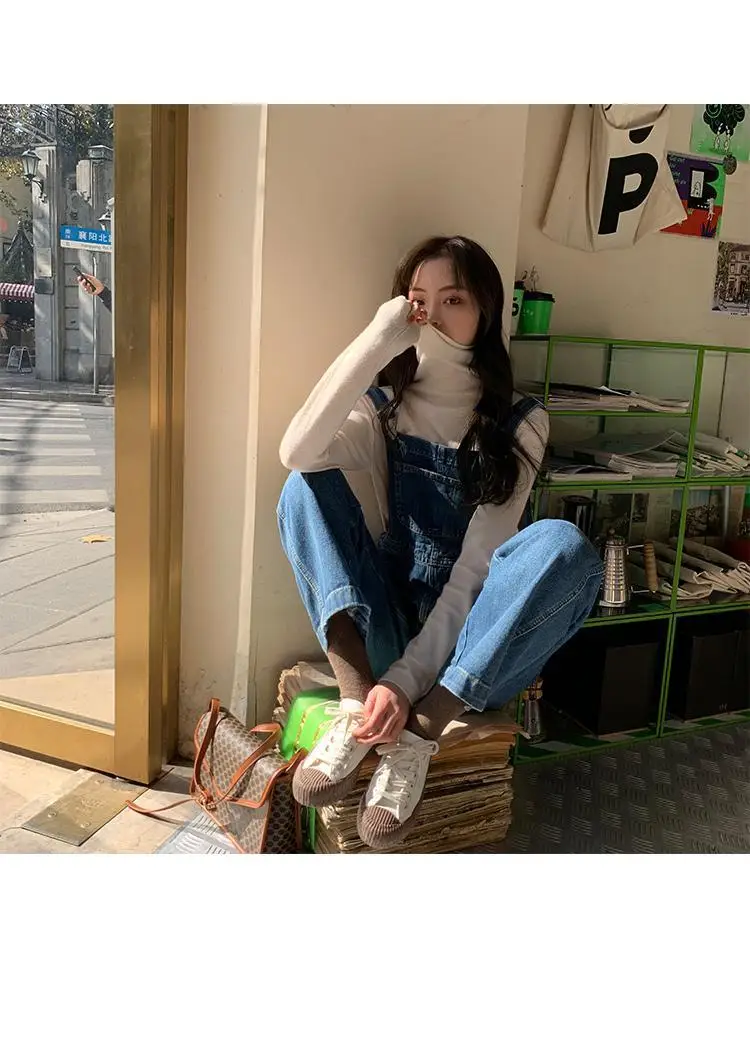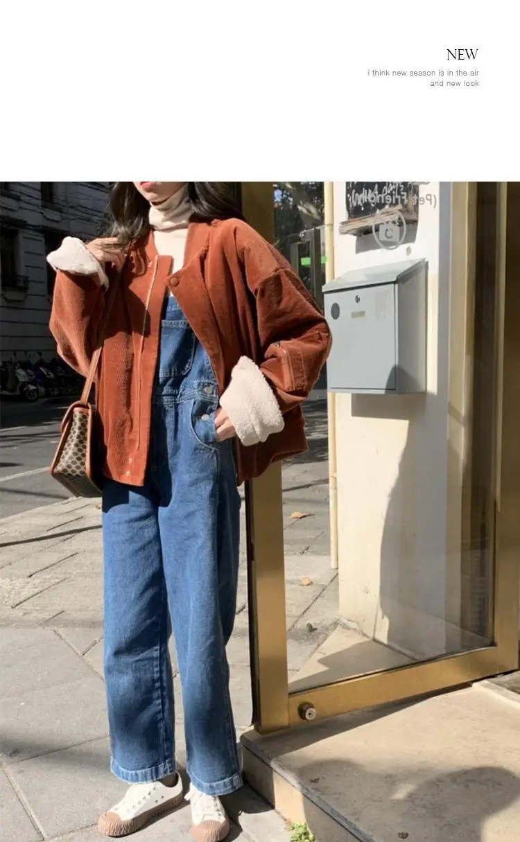 Denim Jumpsuits Women Solid Basic Overalls BF Chic College High Street Office Lady Elegant Long New Hot Sale Blue Fashion 2021