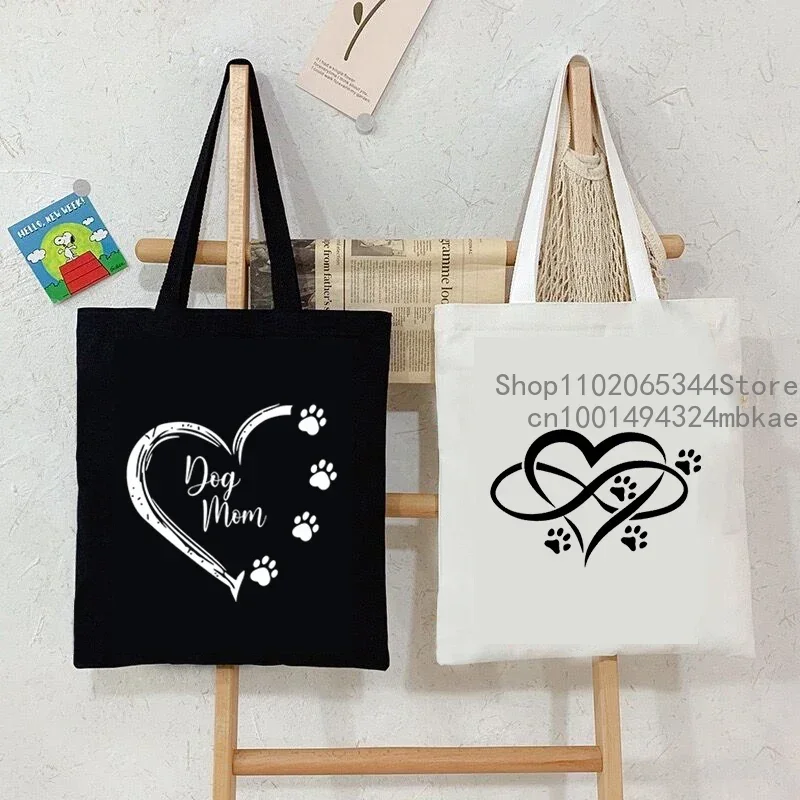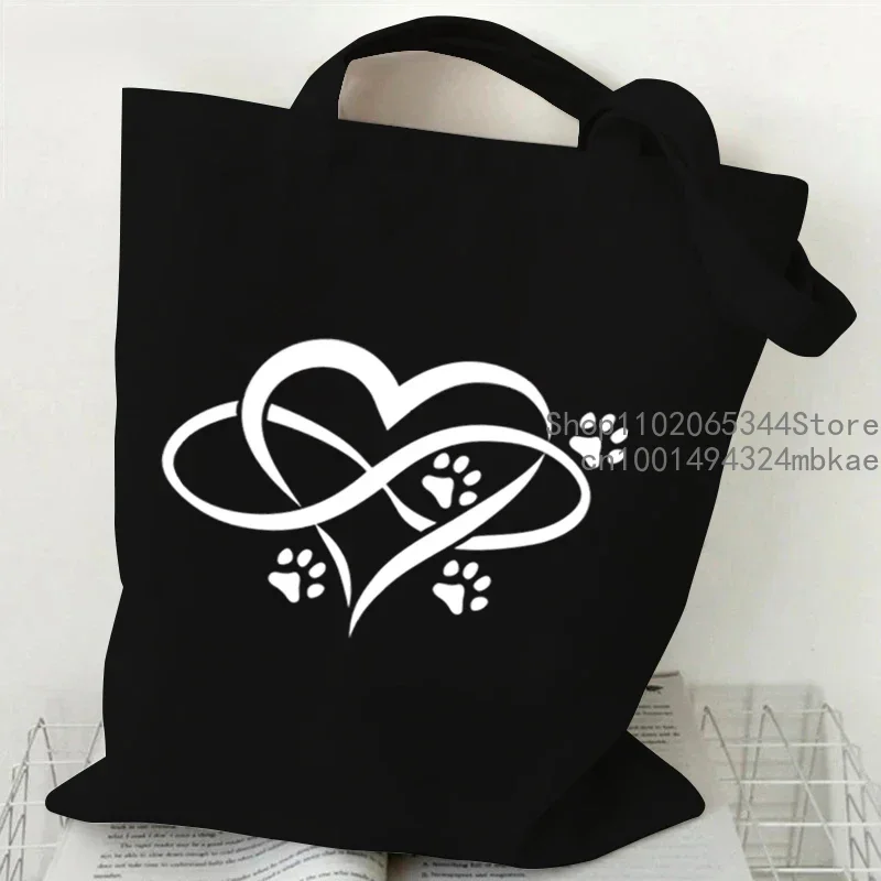 Dog Cat Paw Heart Print Handbags Women Men Harajuku Fashion Shoulder Bag Casual Funny Animal Lover Shopping Trend Cute Tote Bag