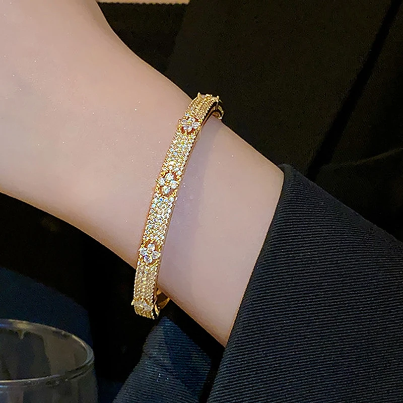 ENSHIR Four Leaf Flower Inlaid Zircon Bracelet For Women Girls Delicate Elegant Jewelry Wedding Party Wholesale