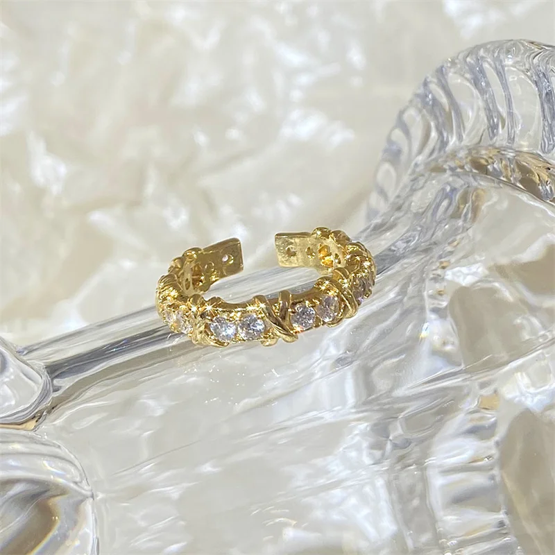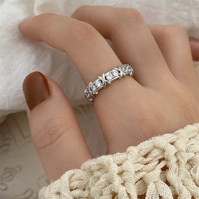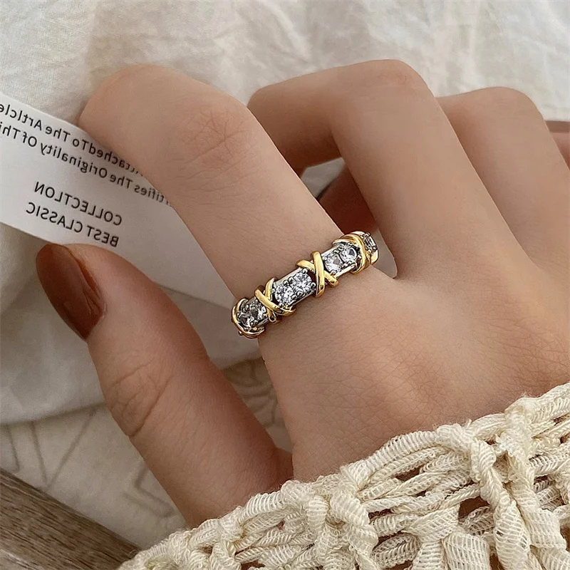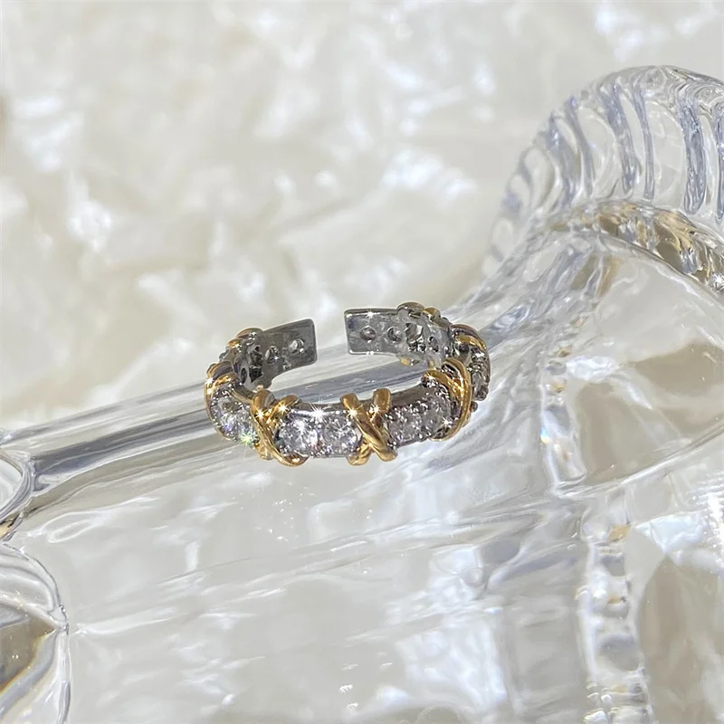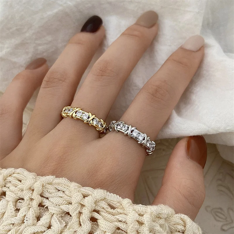 Fashion Letter X Cross Open Ring for Women Girls Clear Geometric Zircon Engagement Rings Wedding Party Jewelry