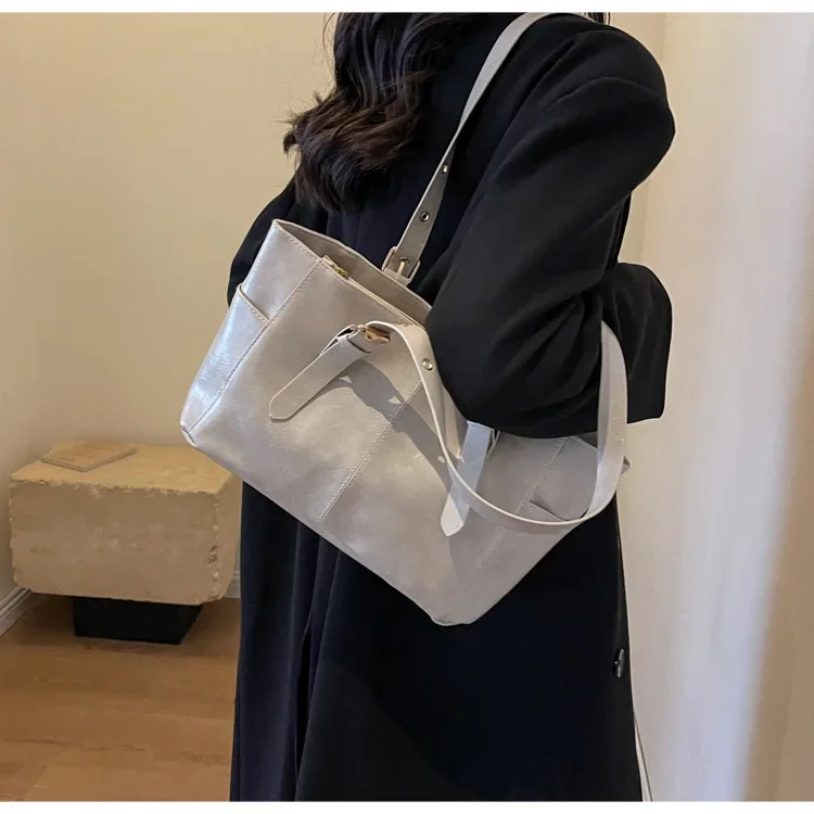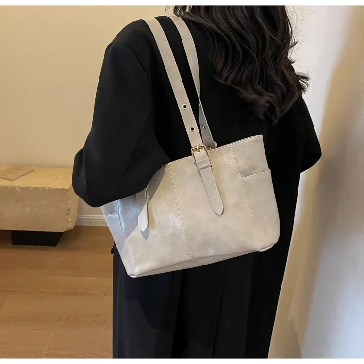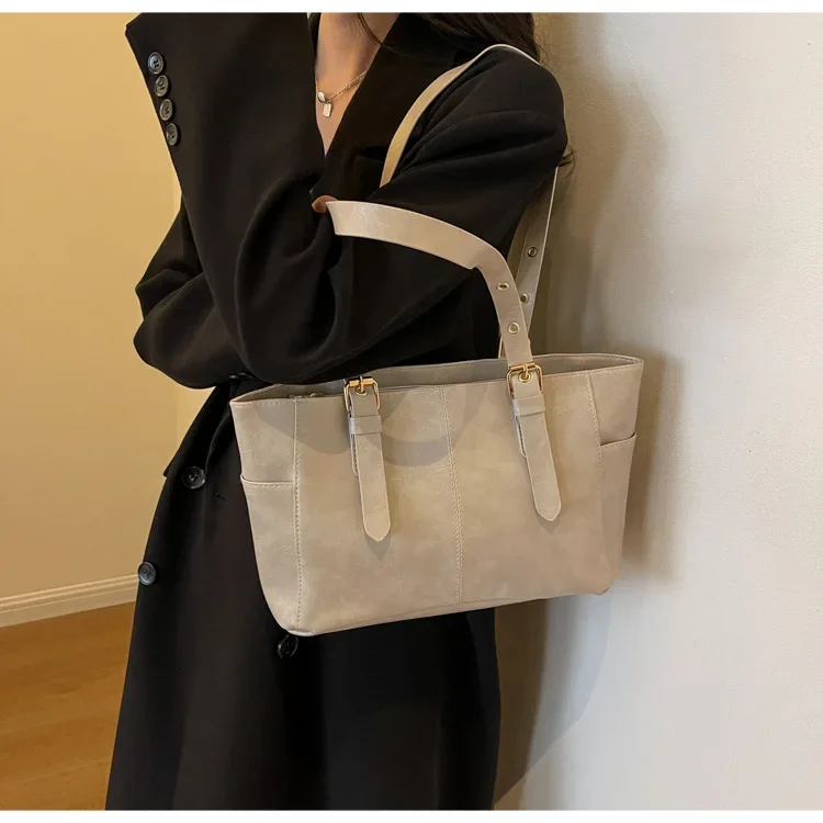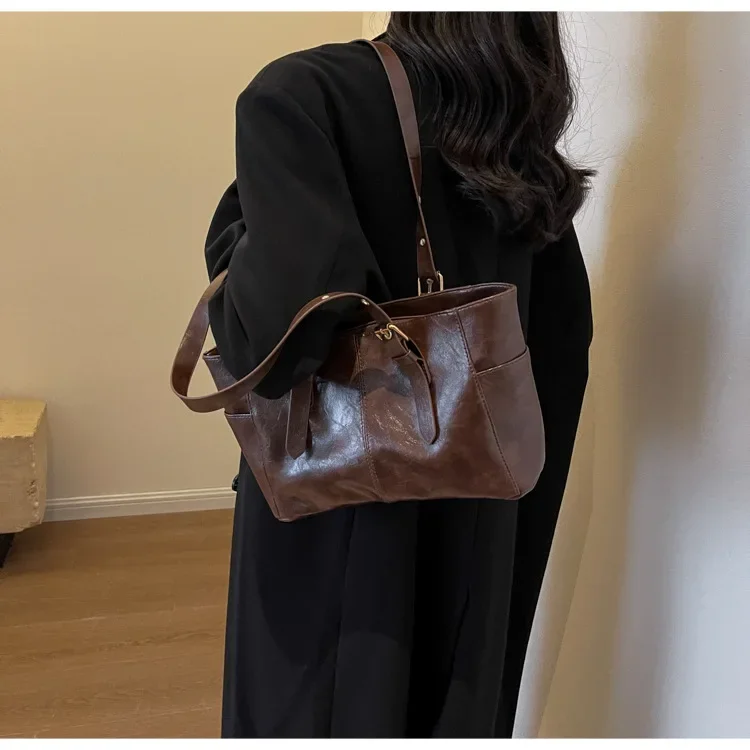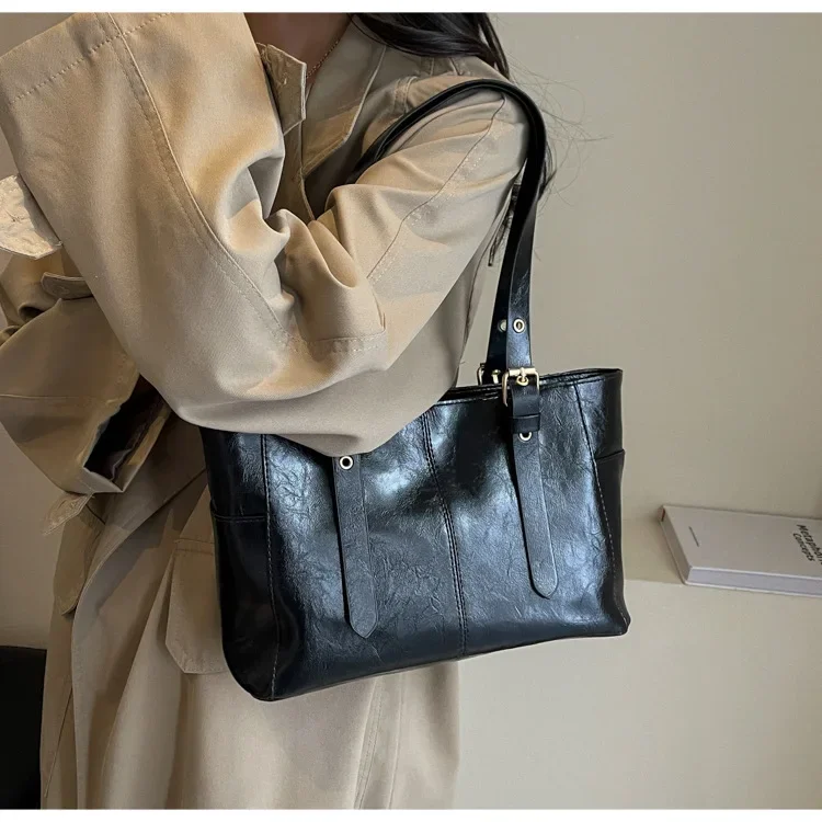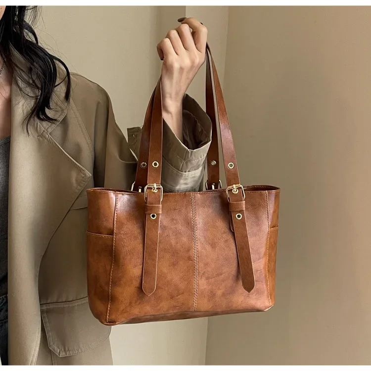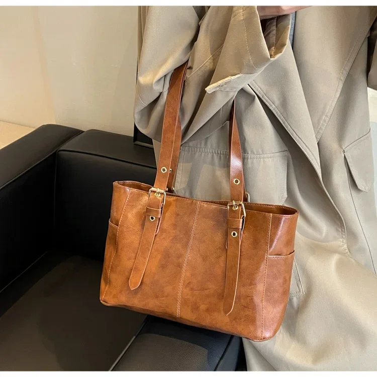 Fashion Retro Women PU Leather Shoulder Bags Trend High End Lady Tote Bag Large Capacity Female's Commuter Bag Handbag Purses