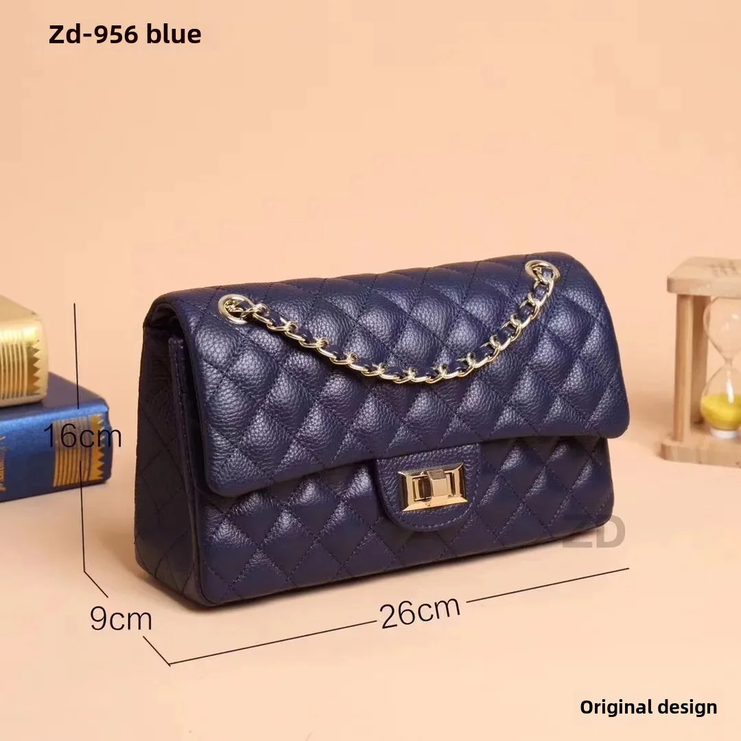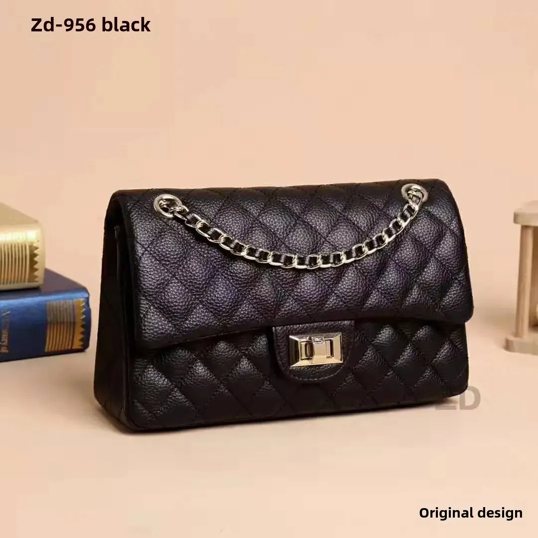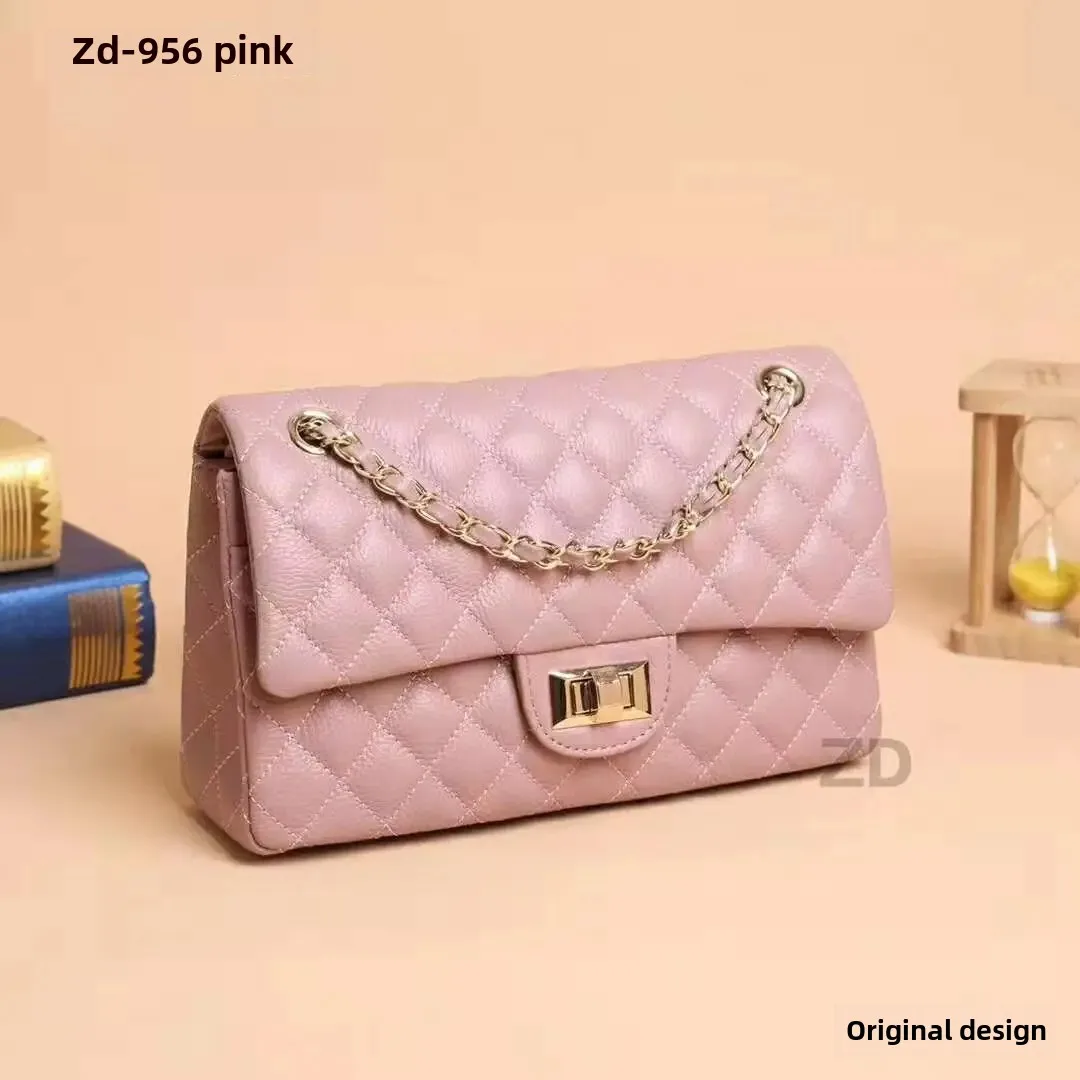 Fashionable Top Layer Cowhide Leather Chain Shoulder Bag Retro Square Buckle Cross-Border Diamond Pattern Head Cover Bag