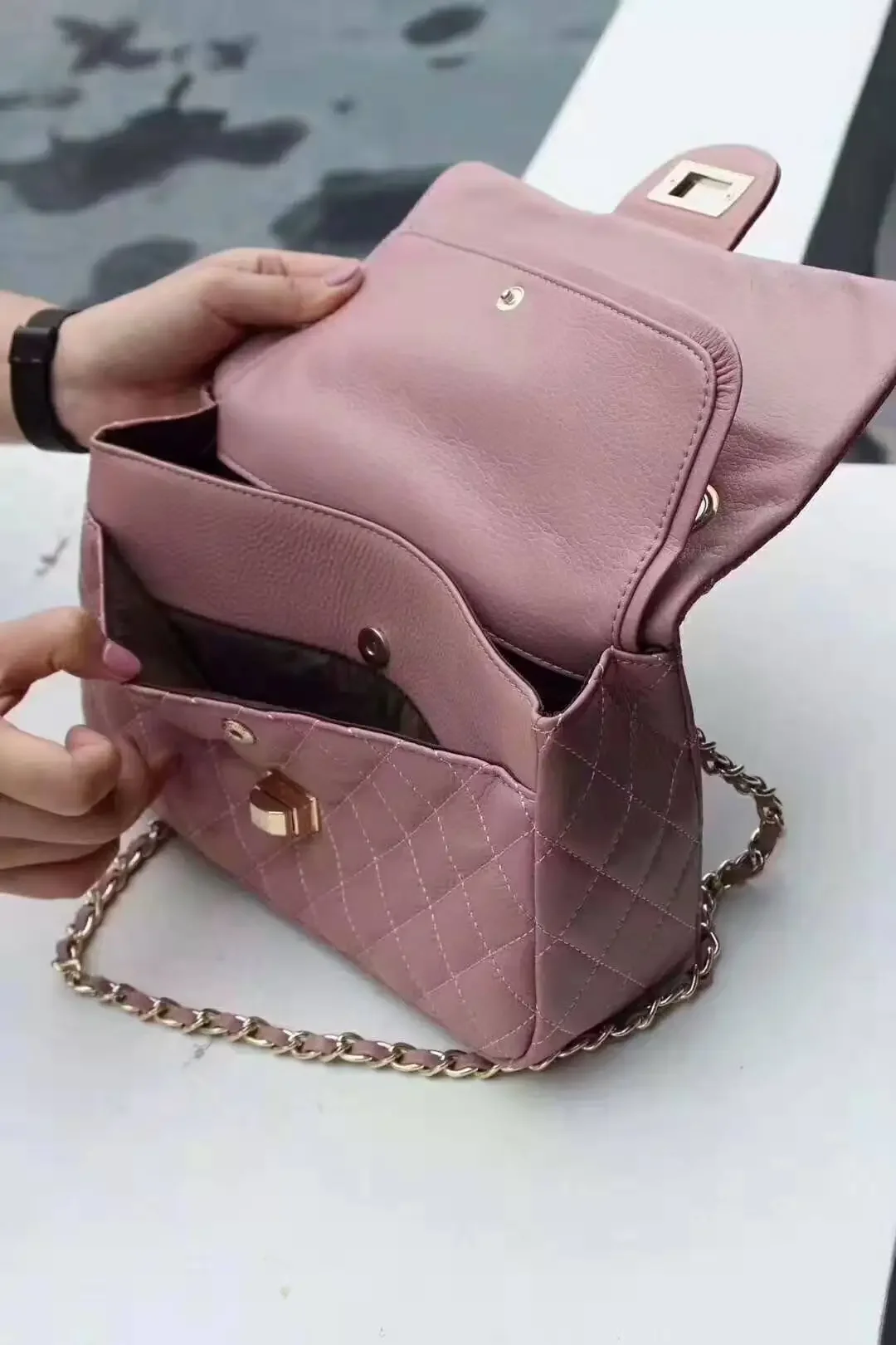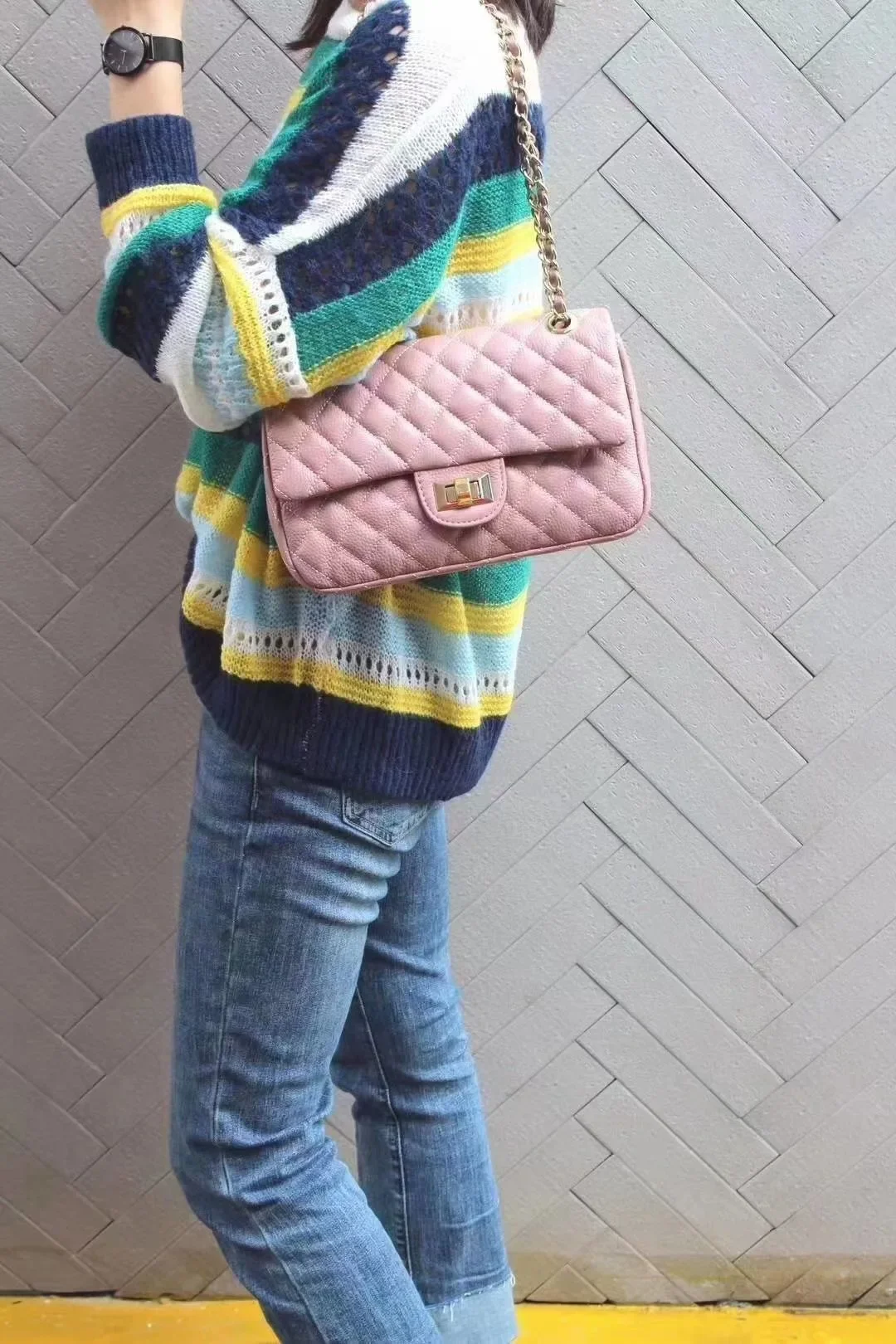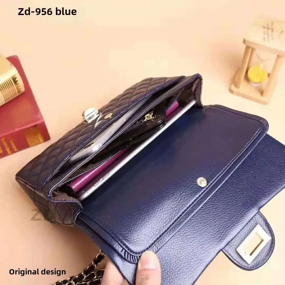 Fashionable Top Layer Cowhide Leather Chain Shoulder Bag Retro Square Buckle Cross-Border Diamond Pattern Head Cover Bag