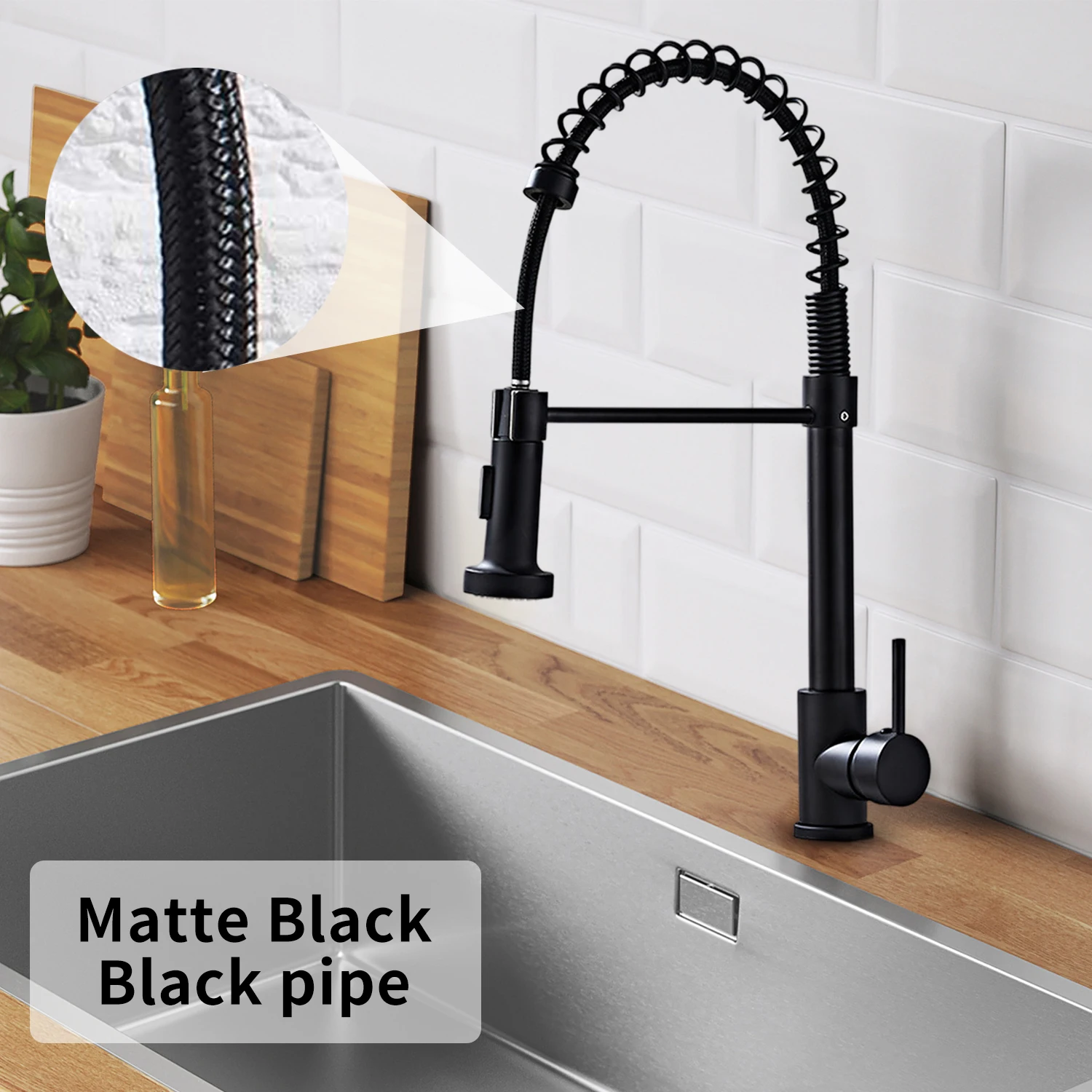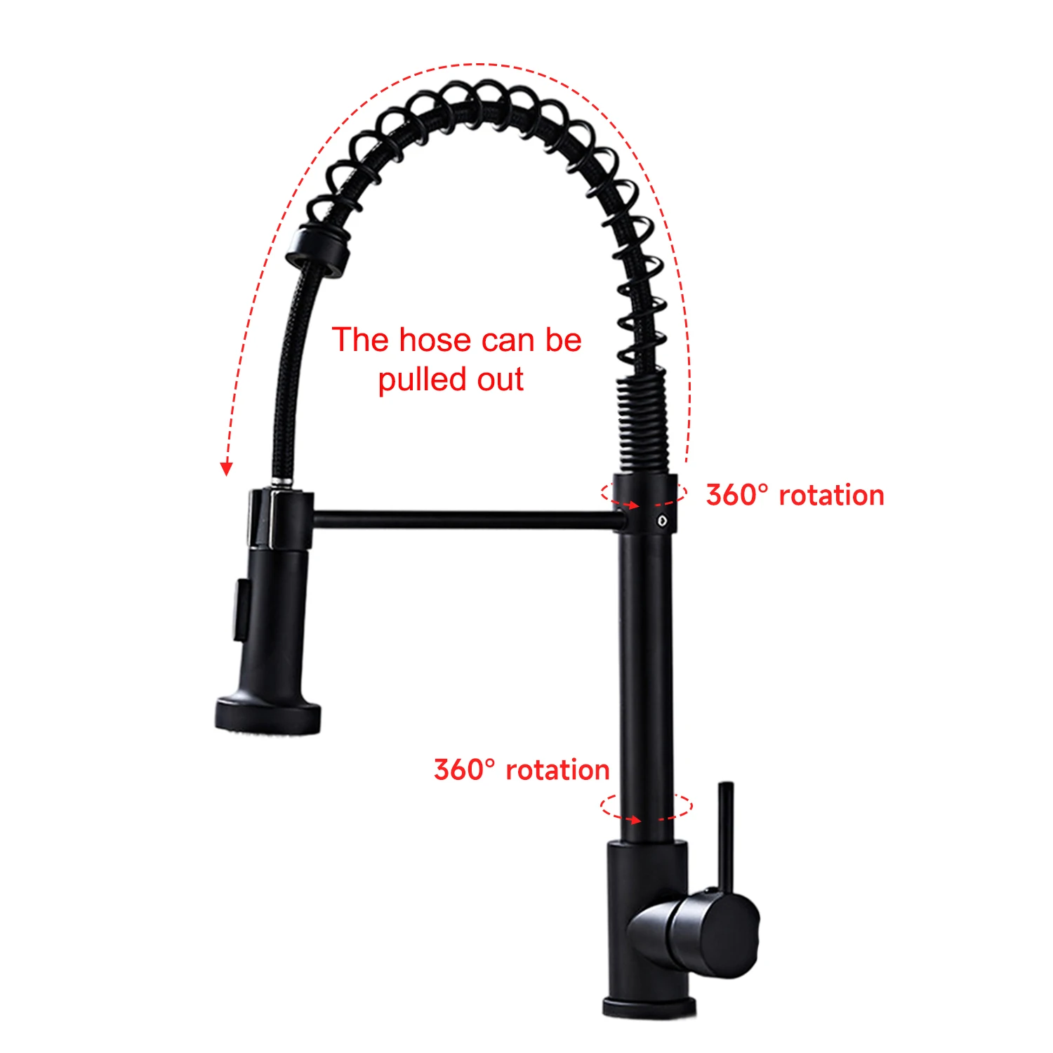 Faucet Spring Pull-Out Sprayer Kitchen Faucets Swivel Nozzle Sink Mixer Taps Hot Cold Water Ceramic Valve Dual-Use Single Holes