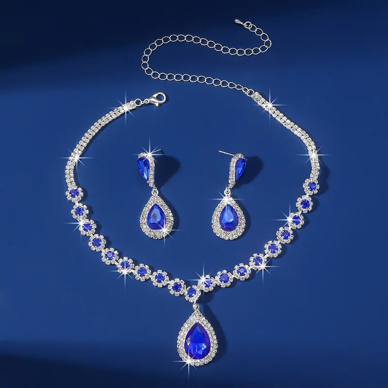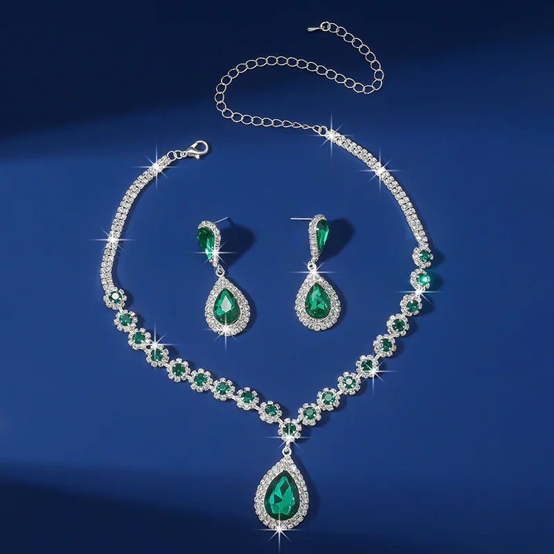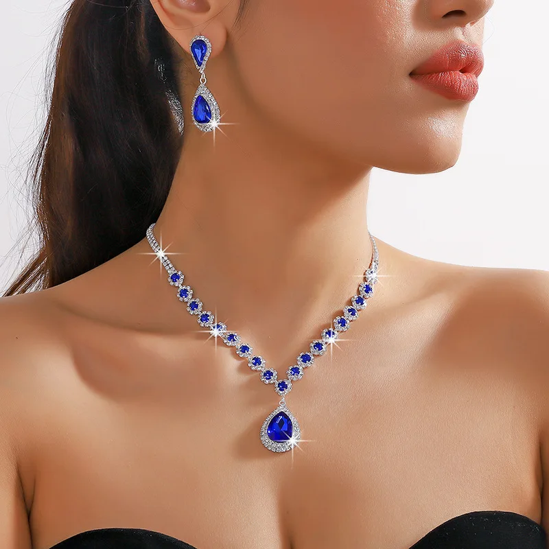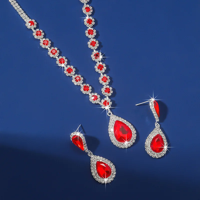FYUAN Luxury Red Green Blue Crystal Necklace Earrings For Women Water Drop Pendant Wedding Bride Jewelry Sets