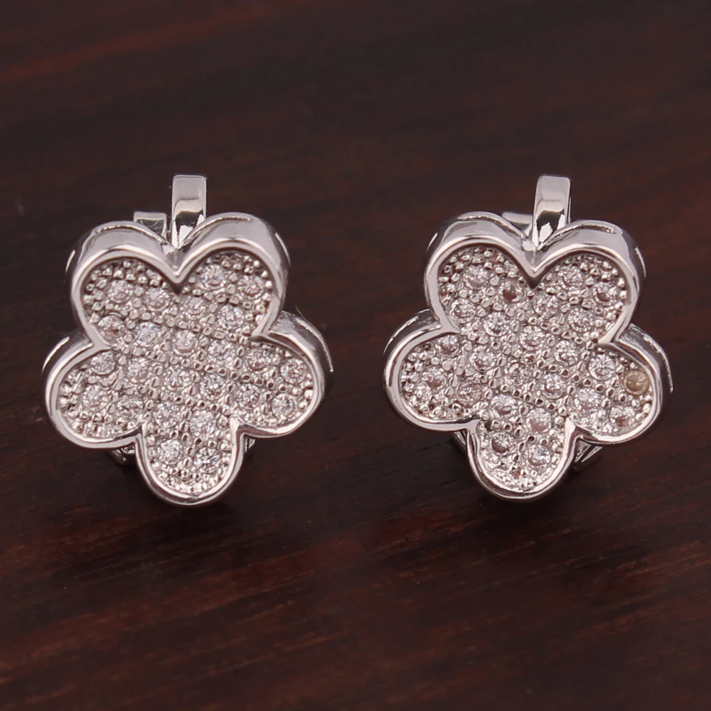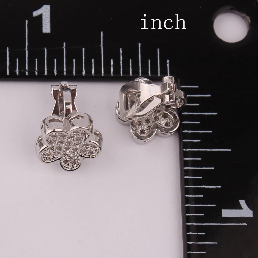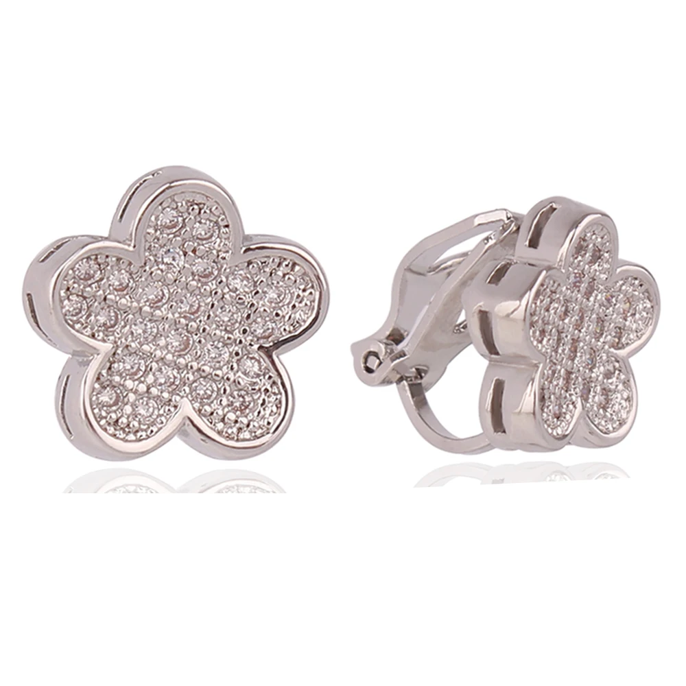 GRACE JUN New Flower Clip on Earrings No Pierced Gorgeous Bride Wedding AAA Cubic Zircon No Hole Earrings High Quality Ear Clip