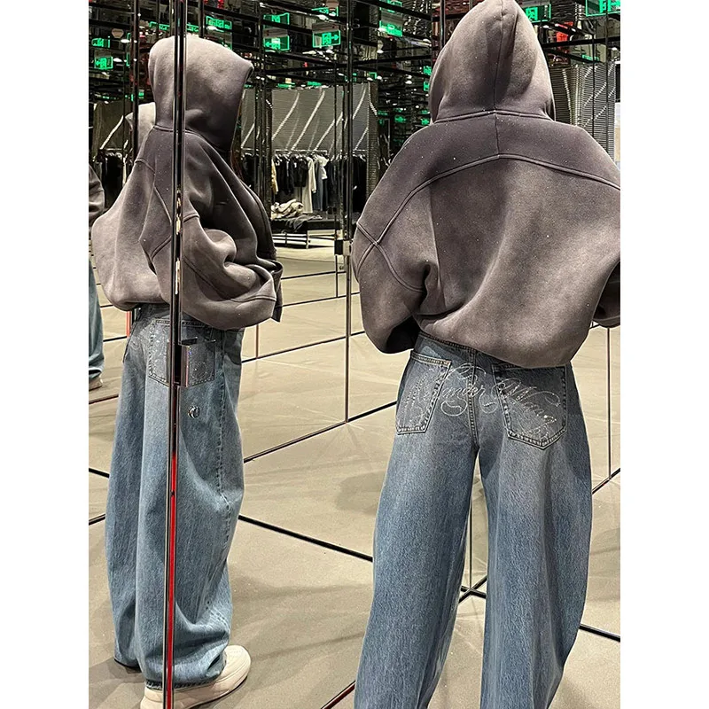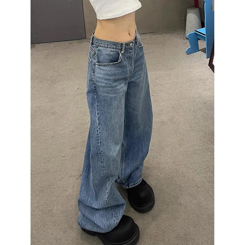 Gradient Spring 2025 Blue Jeans Women Y2K Vintage High Waisted Jeans Straight Streetwear Loose Large Wide Leg Denim Pants