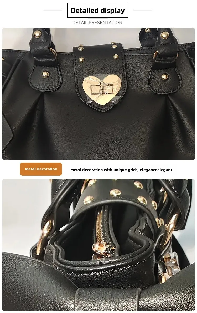 Harajuku Bow Pink Hand Bag Purse Women Japanese Style Soft Casual Crossbody Bag Ladies Sweet Cute Large Capacity Shoulder Bags
