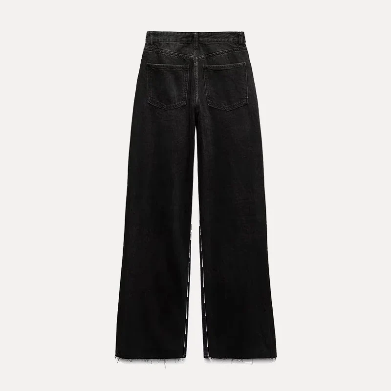 The wide-leg cut of these jeans adds a touch of elegance and comfort, making them ideal for both casual and formal settings.