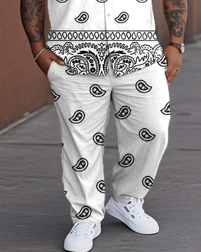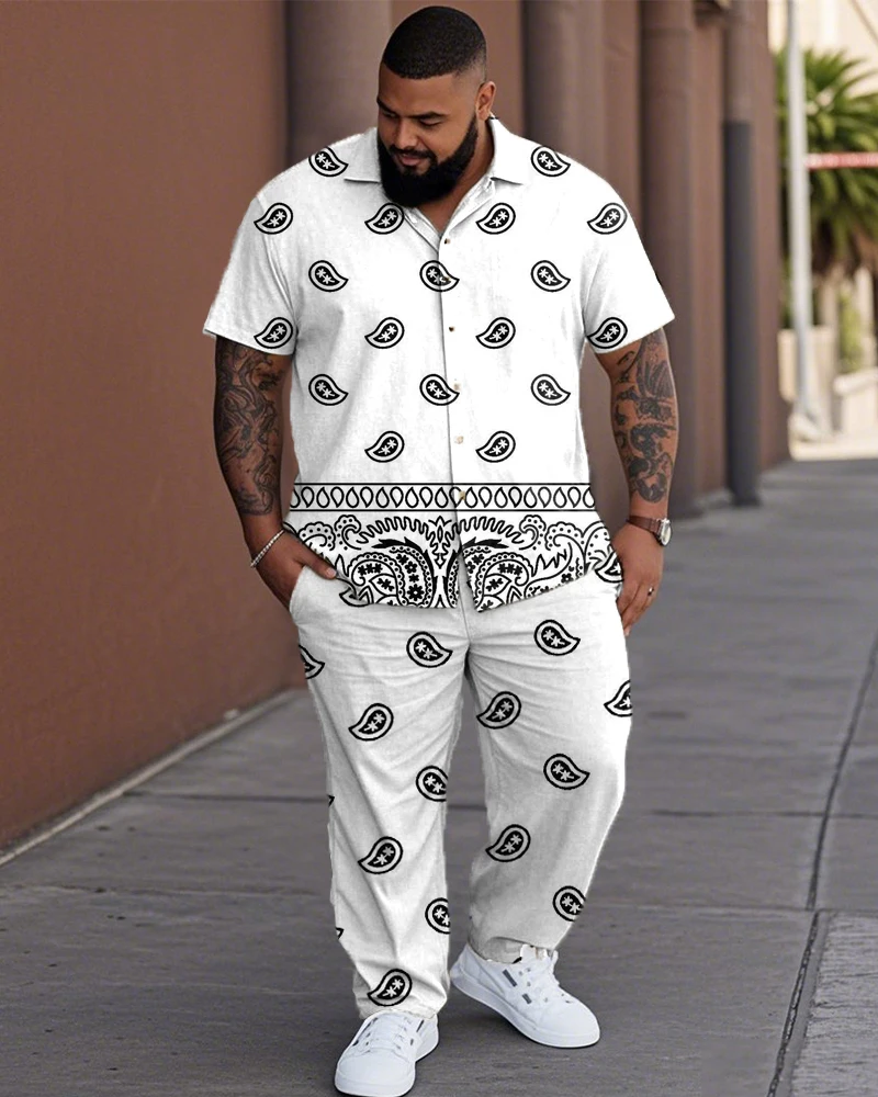 Holiday style cashew flower short-sleeved shirt and trousers plus size men's suit