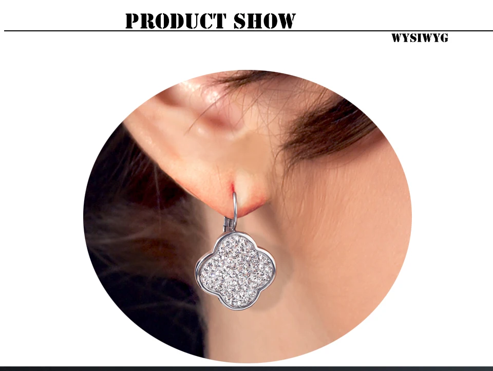 Hot Korean Fashion Four-leaf Clover Zircon Pendant Earrings Temperament women Drop Earrings auricular girl needling Ear Jewelry