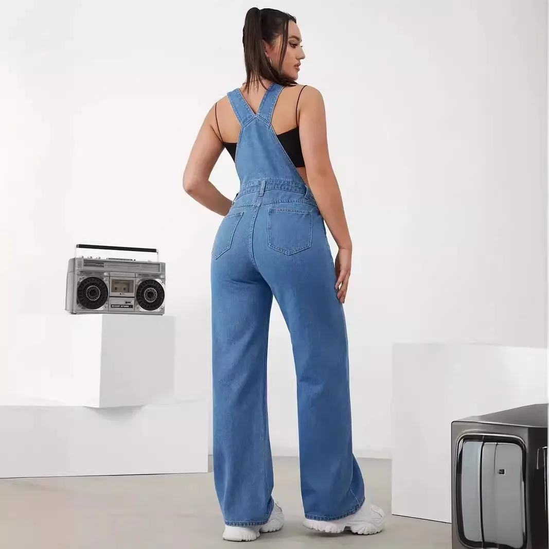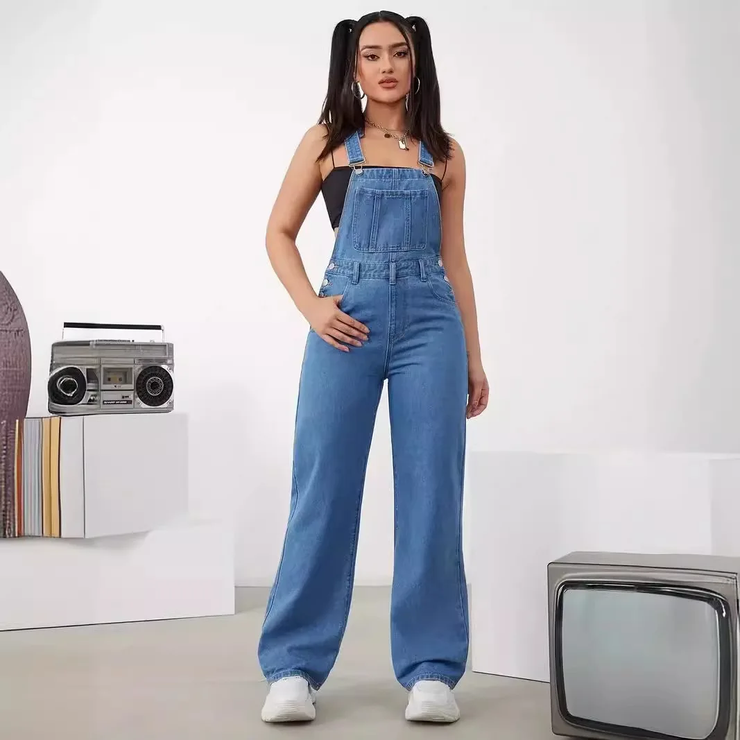 Hot Sale Womens Denim Bib Jumpsuits Casual Sleeveless Adjustable Straps Loose Baggy Cargo Jean Overalls Y2K Jumpers With Pockets