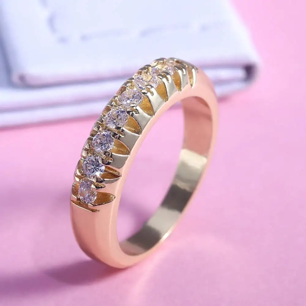 Huitan High Quality Office Lady Accessories Rings Golden Color Halo Micro Paved Casual Style Female Jewel With Size 6-10 2019