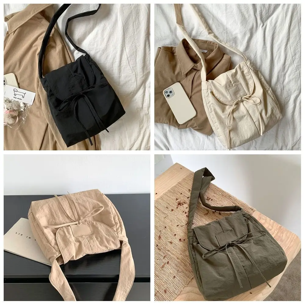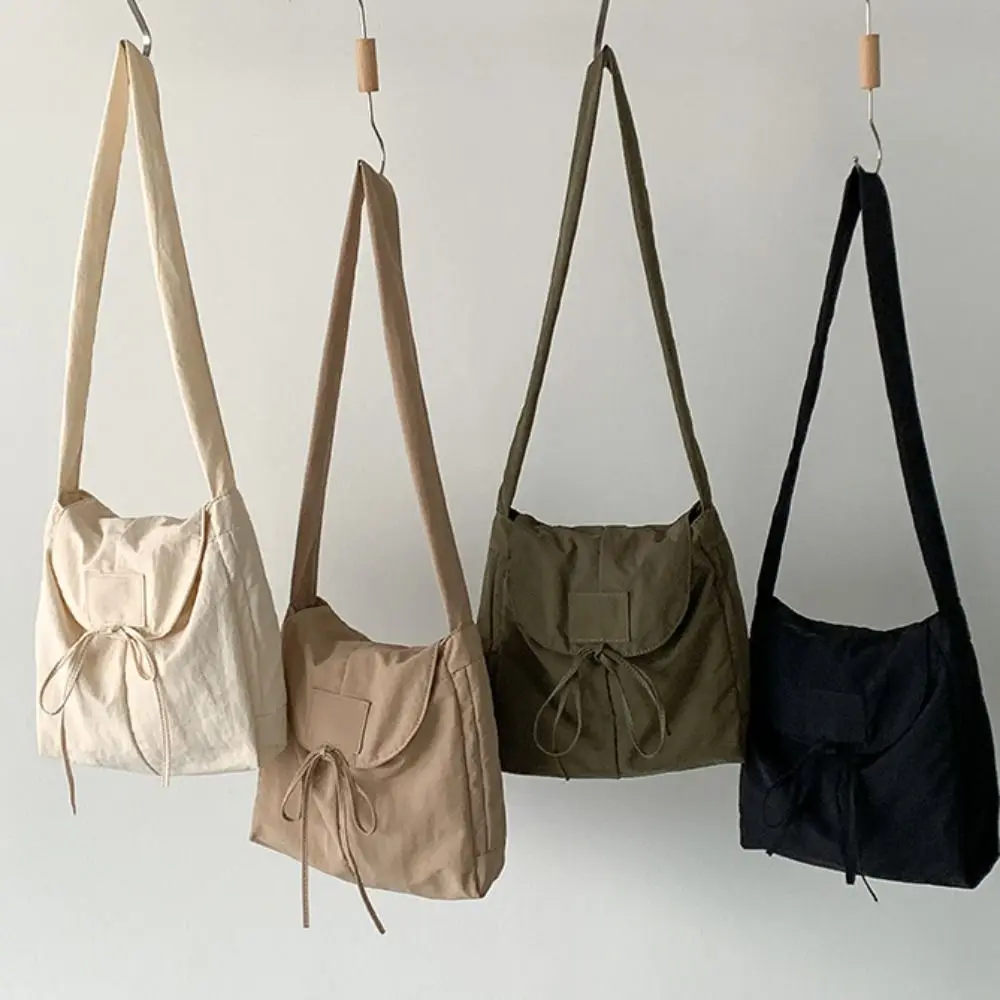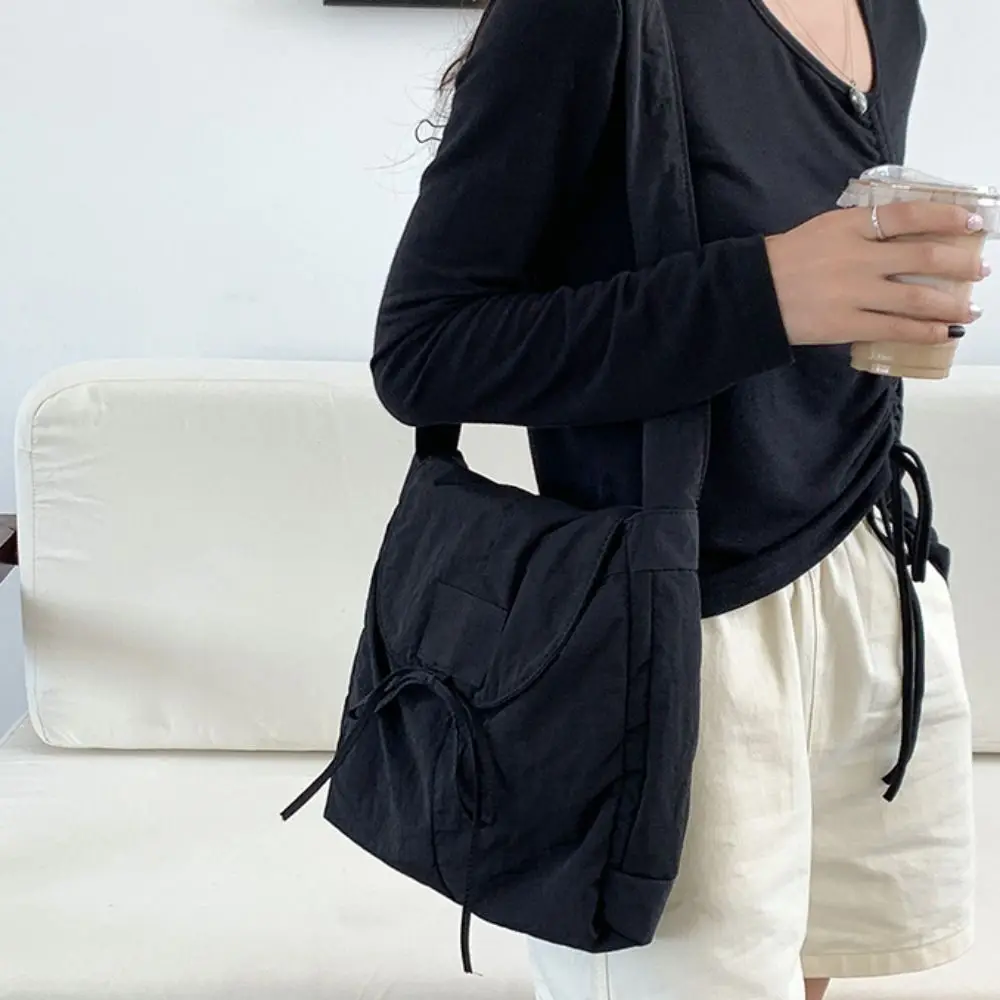 Korean Style Flap Nylon Bow Crossbody Bag Messenger Bag Niche Design Light Soft Nylon Bag Large Capacity Tote Bag Shoulder Bag