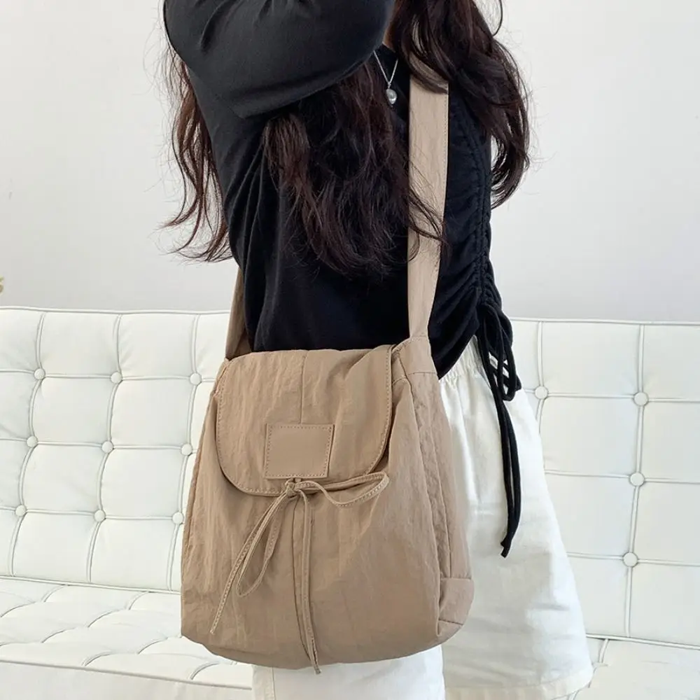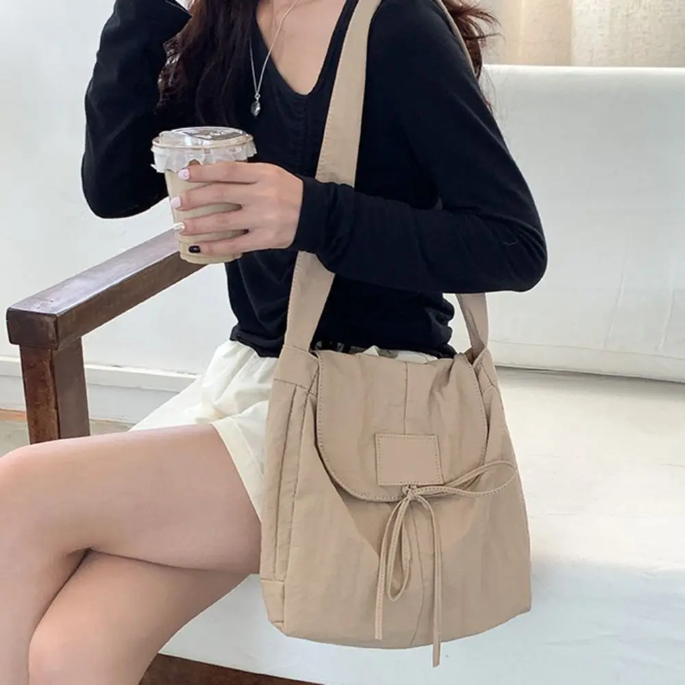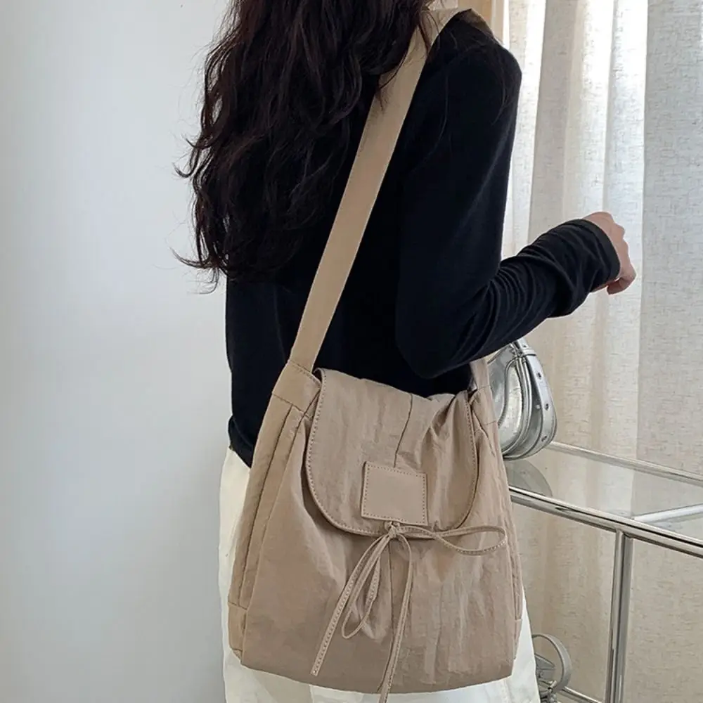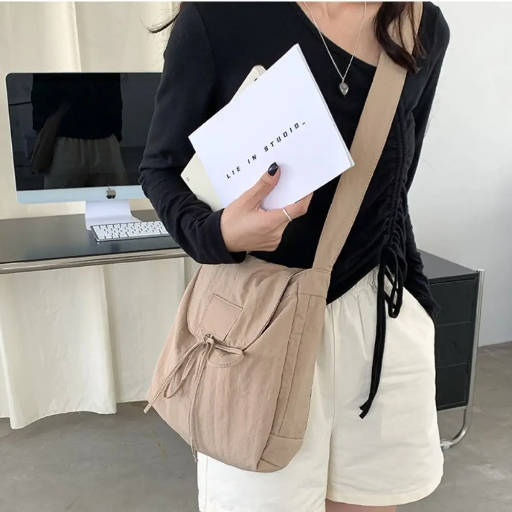 Korean Style Flap Nylon Bow Crossbody Bag Messenger Bag Niche Design Light Soft Nylon Bag Large Capacity Tote Bag Shoulder Bag