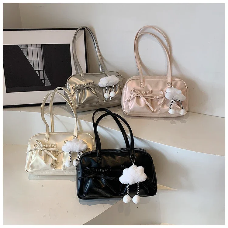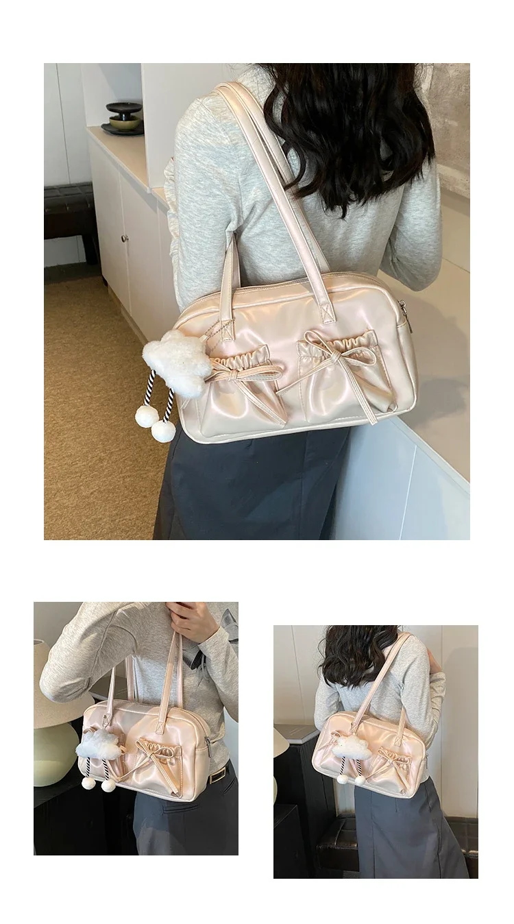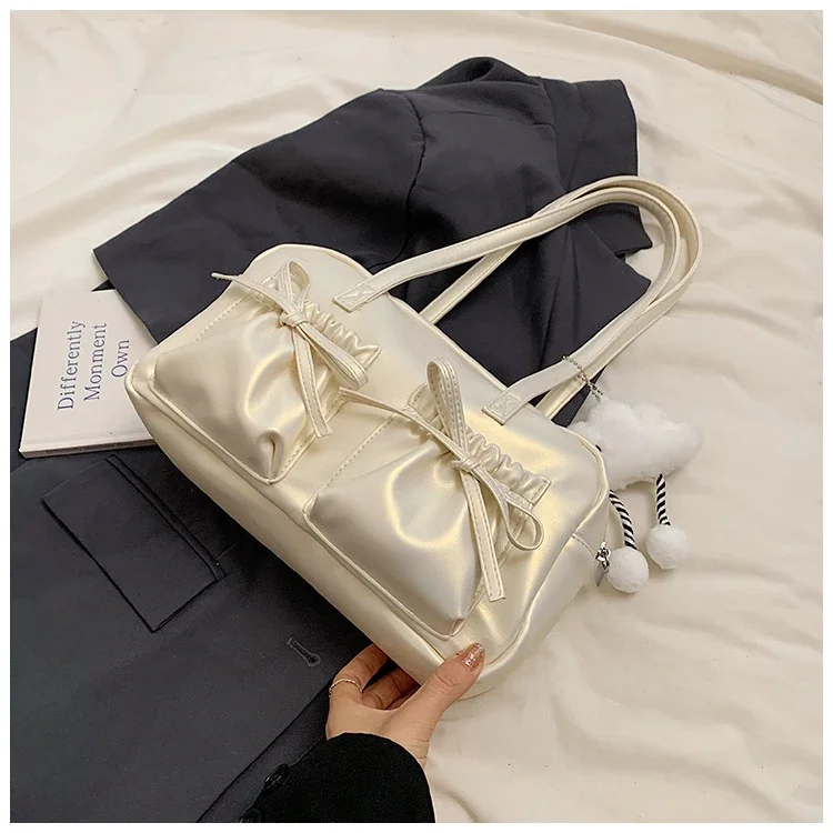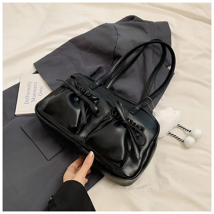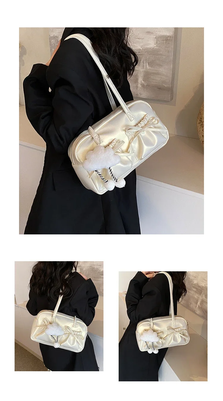 Korean Version Sweet Girly Style Shoulder Bag Fashion Pleated Handlebags for Women PU Leisure Armpit Bag Female Hand Bags Purse