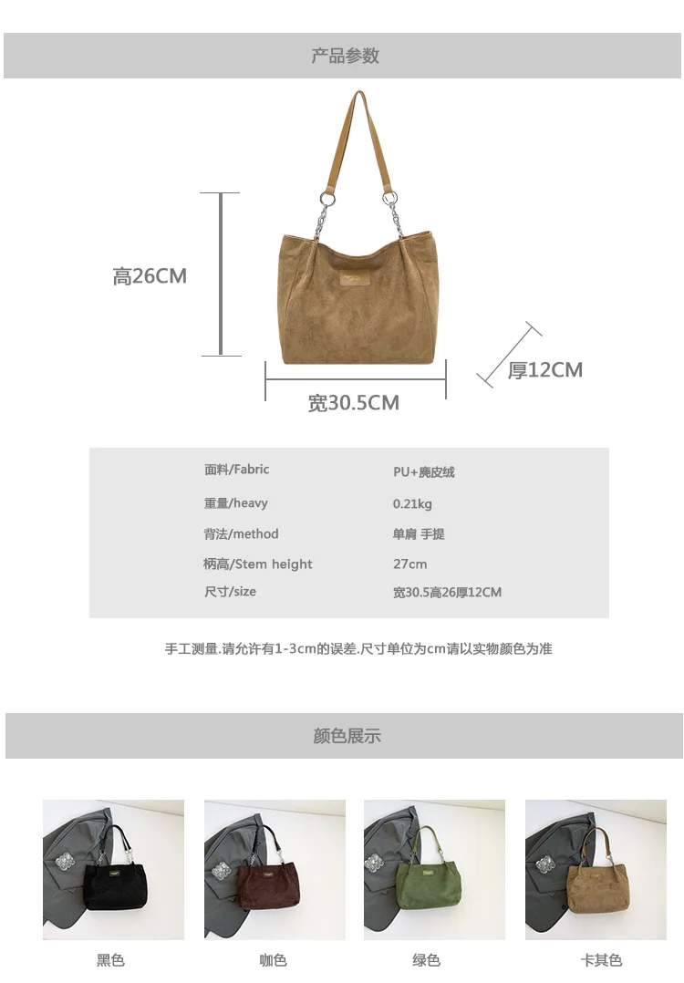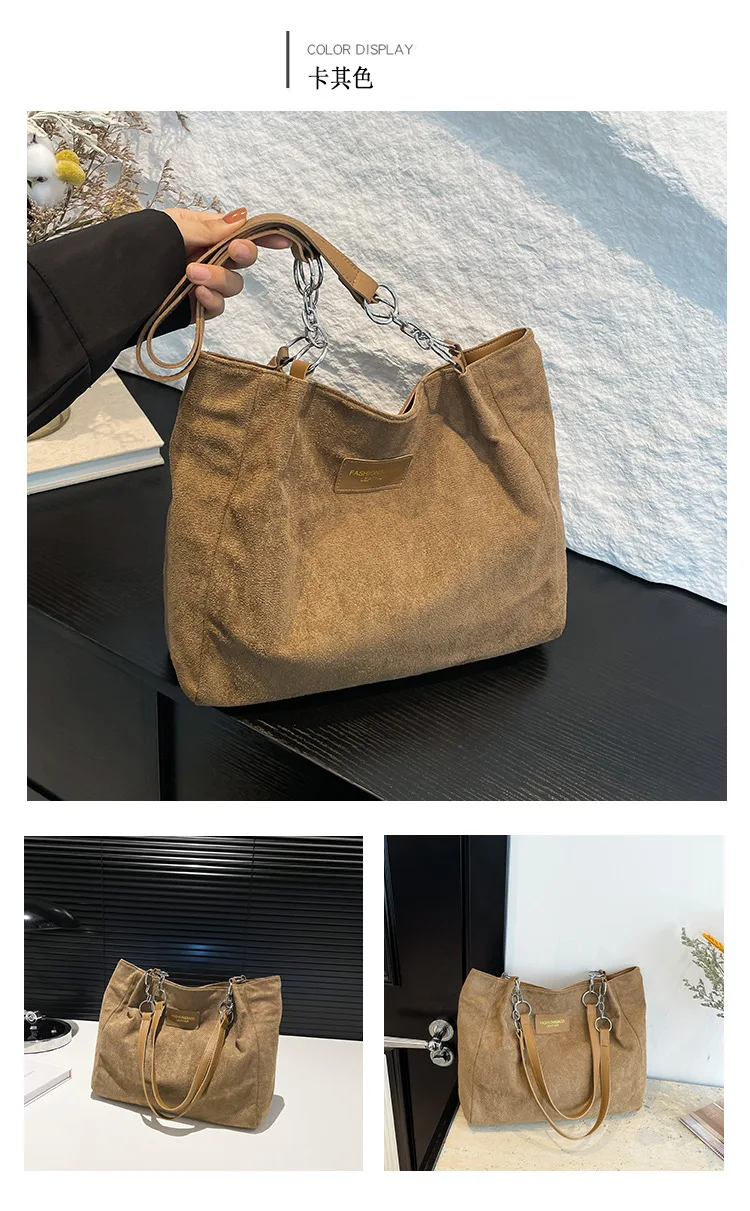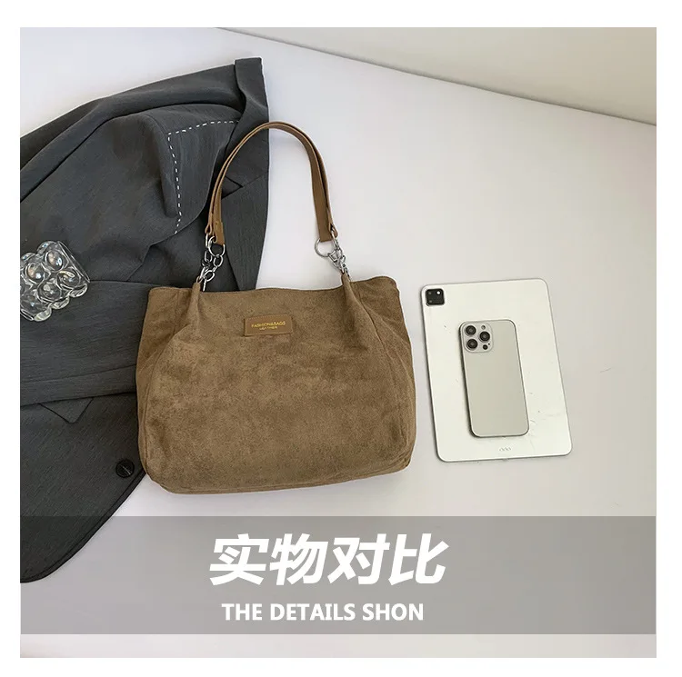 Large-Volume Suede Stylish Commuter Tote Bag For Ladies With One Shoulder Bag