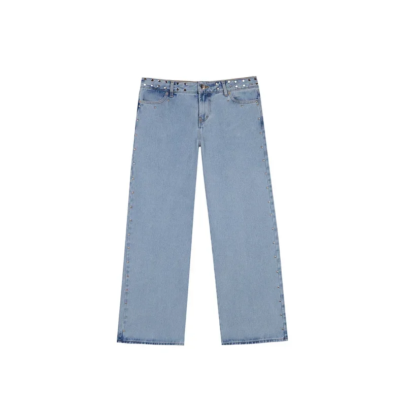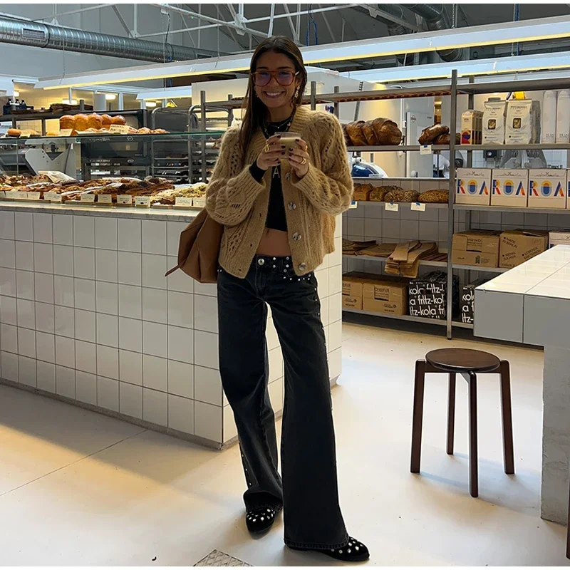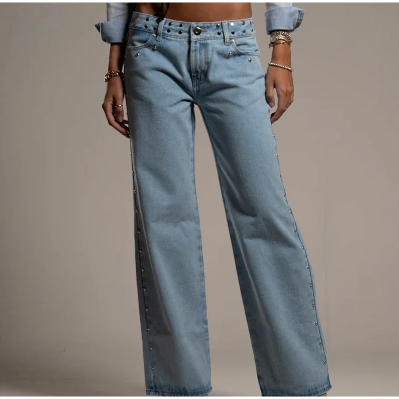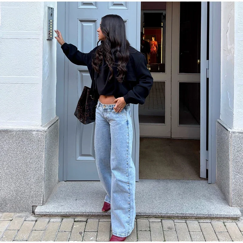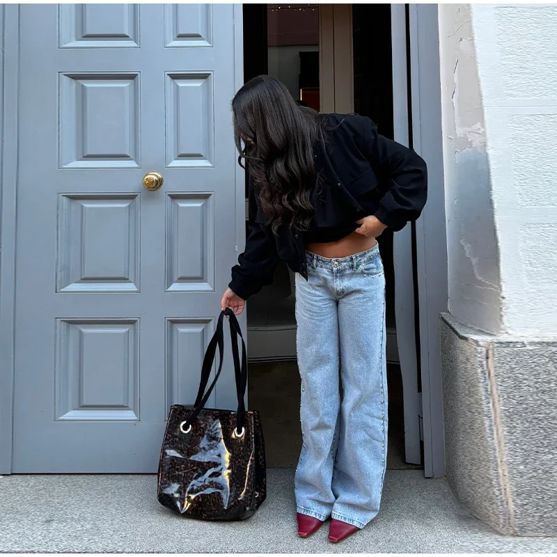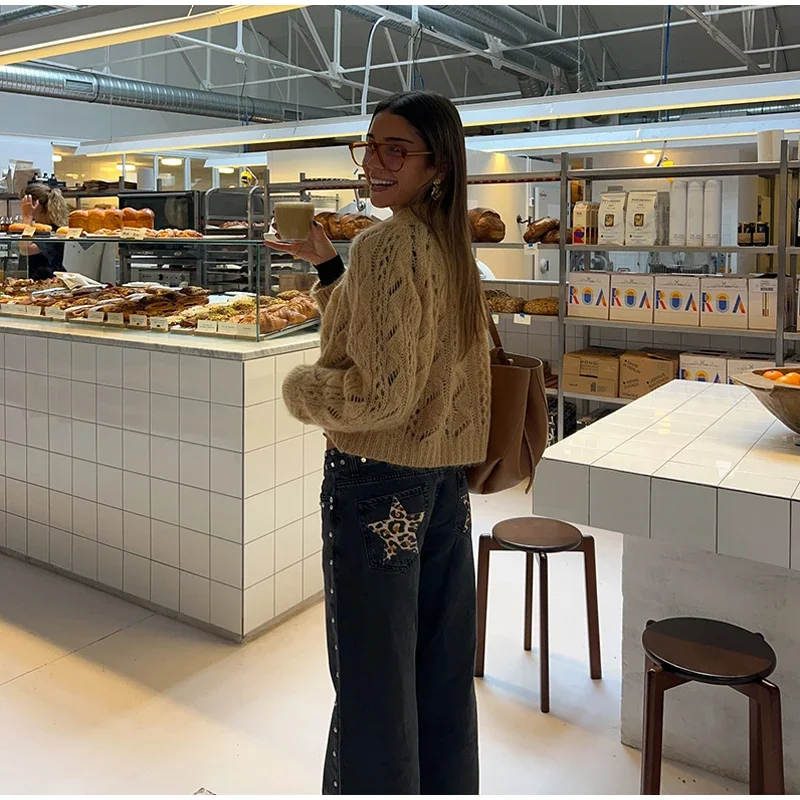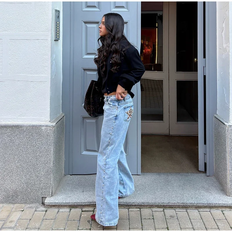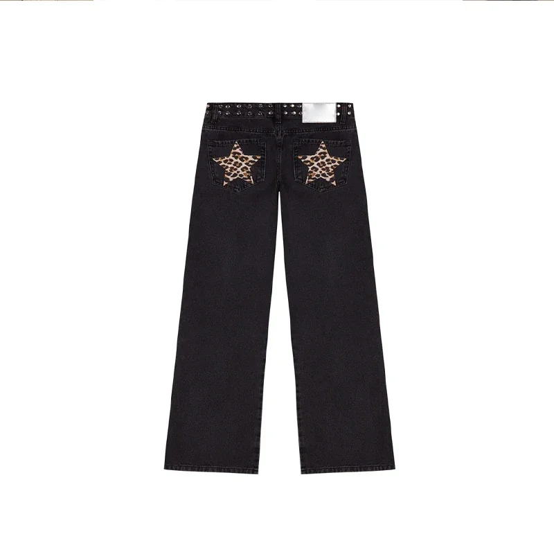 Leopard Star Print Jeans Women Fashion High Waist Zipper Straight Leg Wide Leg Pants 2025 Spring New Female Casual Streetwear
