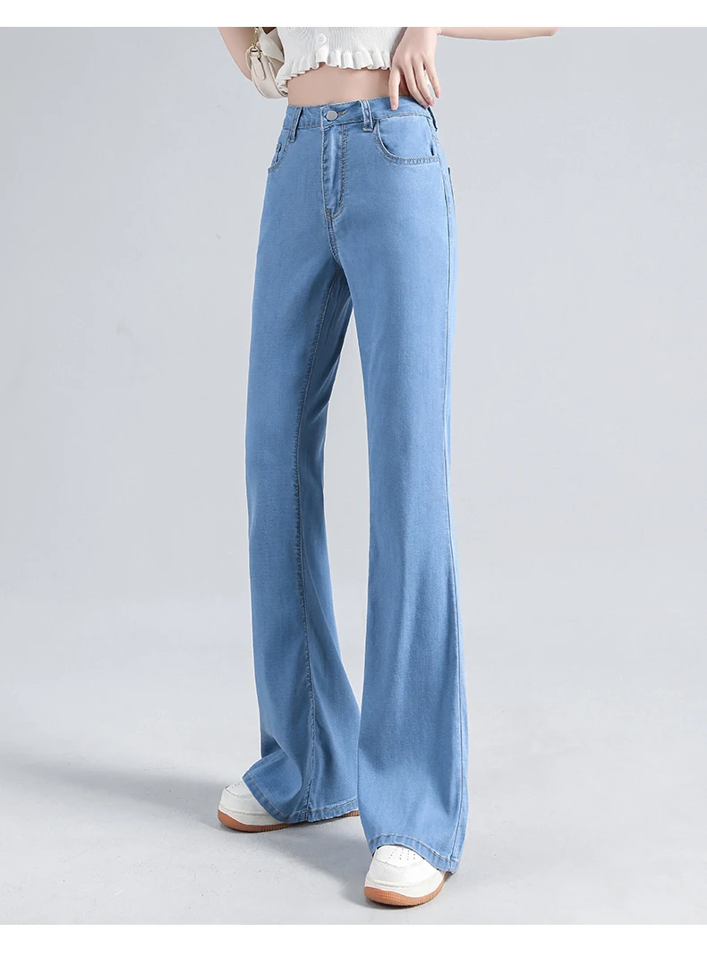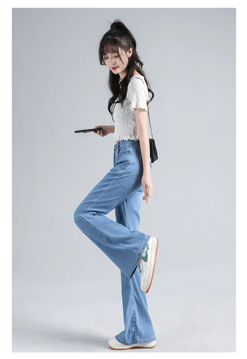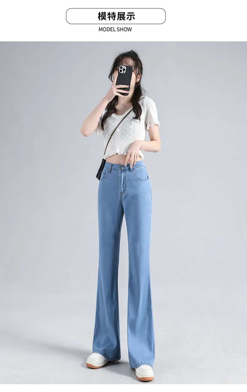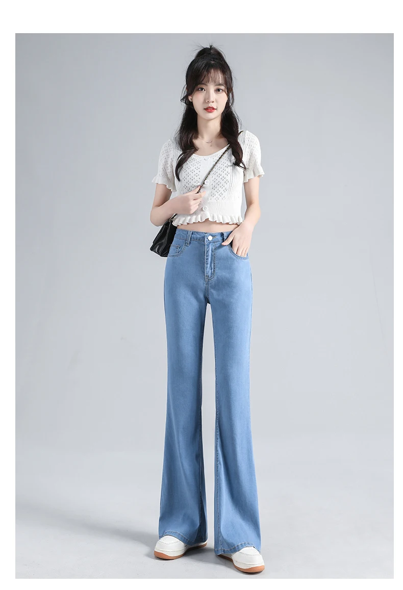 Lyocell Flared Jeans Woman High Waist Slim Stretch Denim Women Tight Pant Korean Street Style Casual Trousers Plus Length