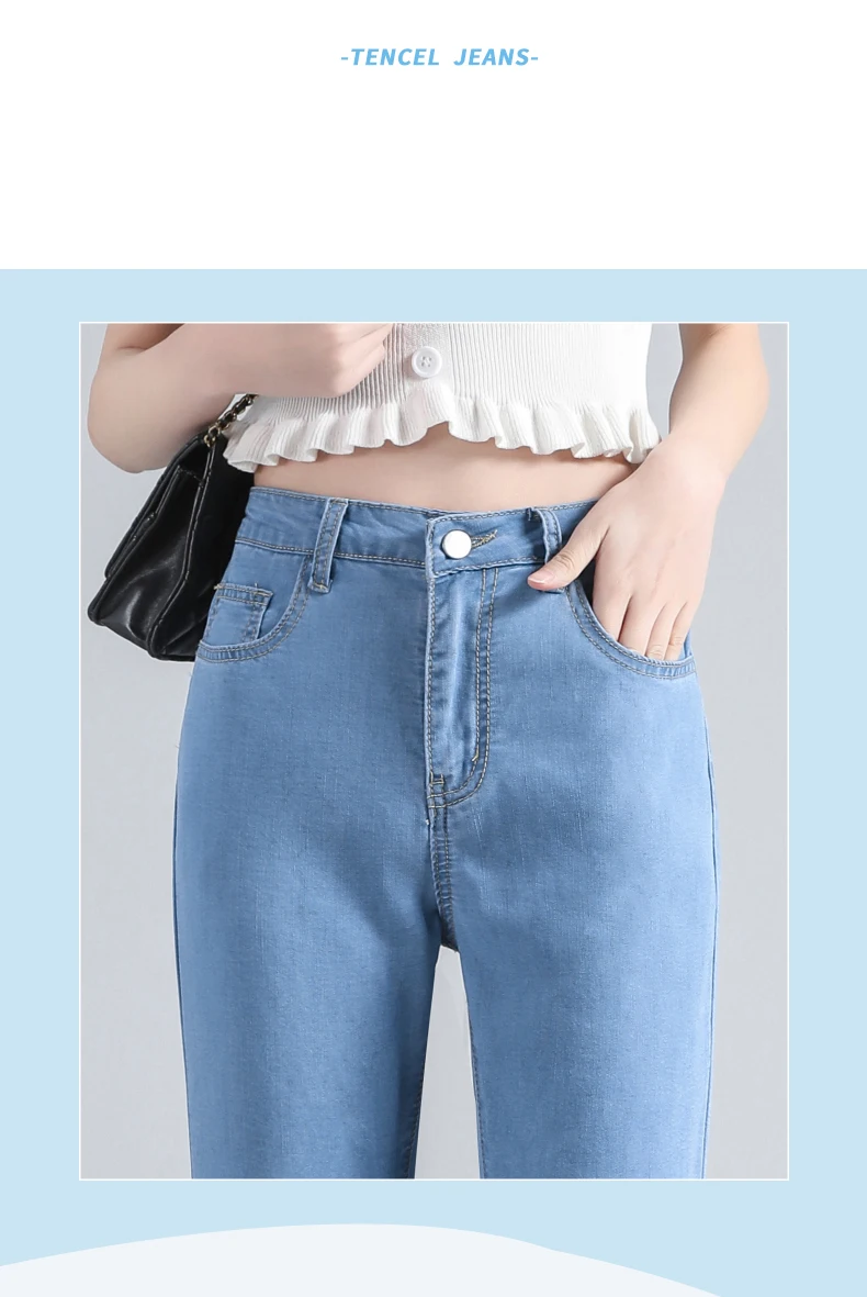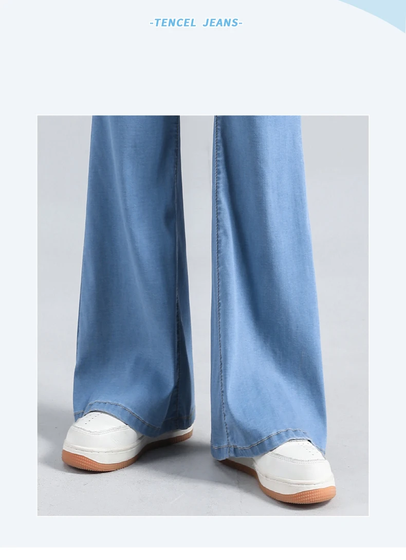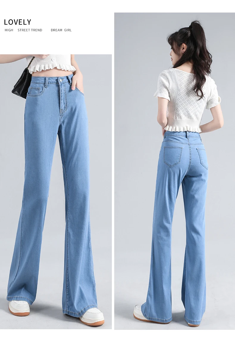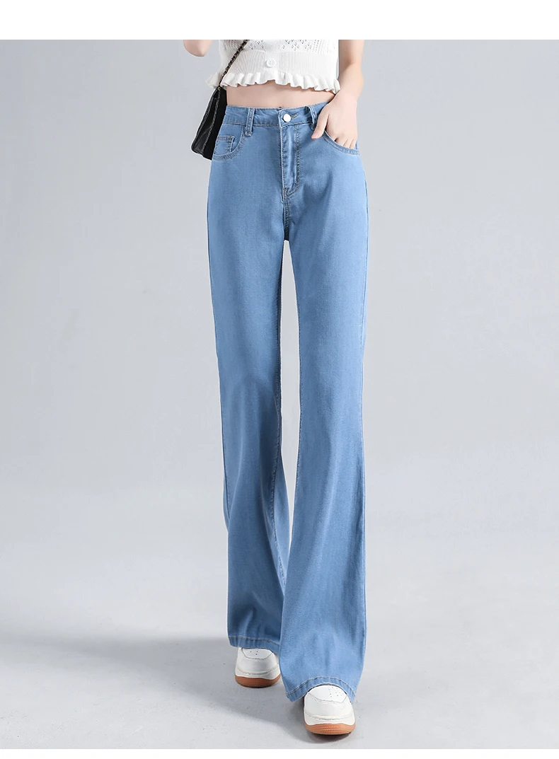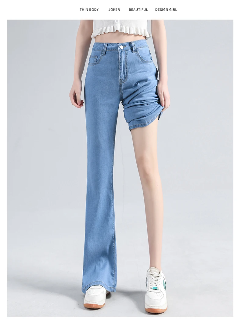 Lyocell Flared Jeans Woman High Waist Slim Stretch Denim Women Tight Pant Korean Street Style Casual Trousers Plus Length