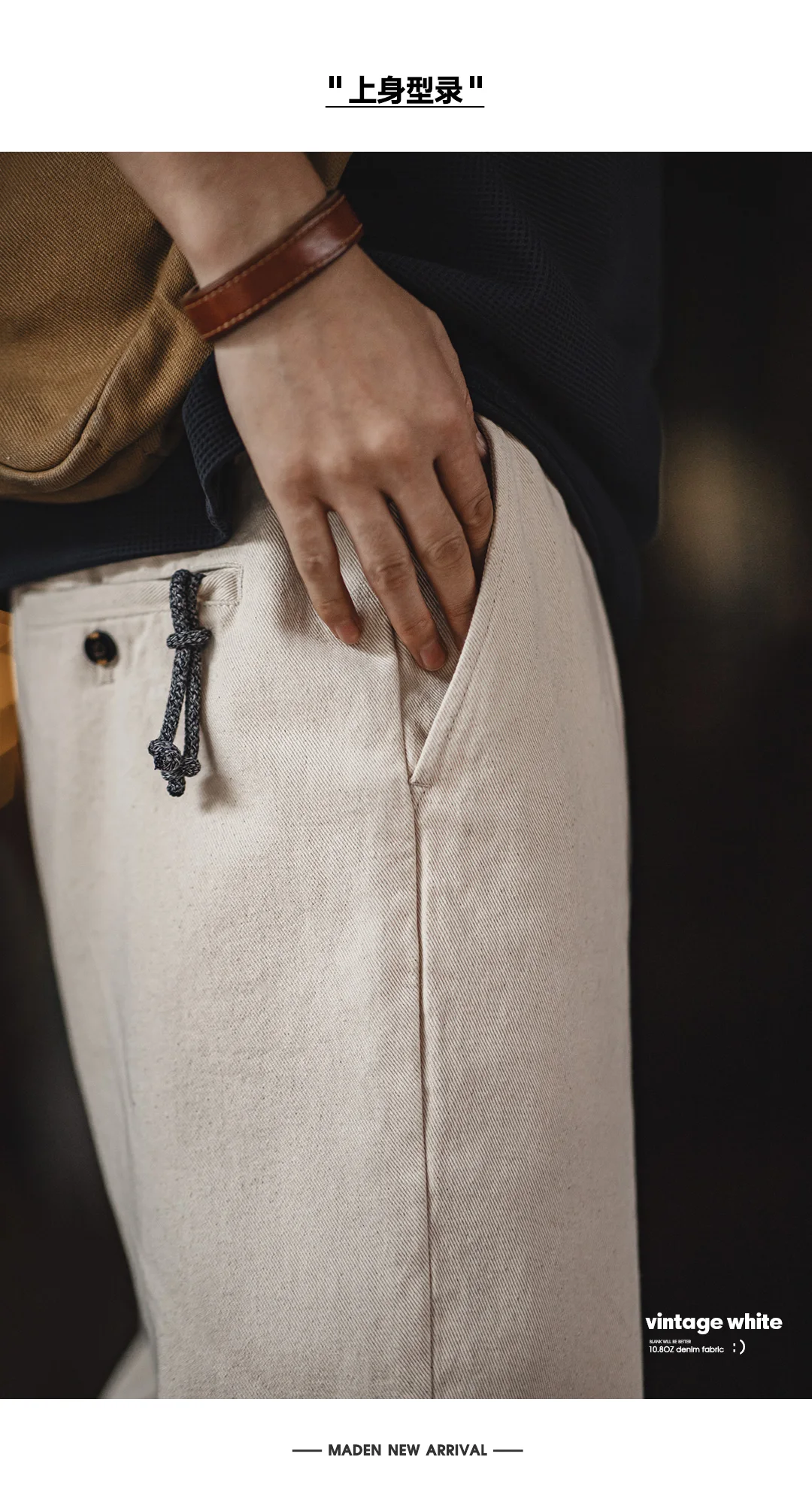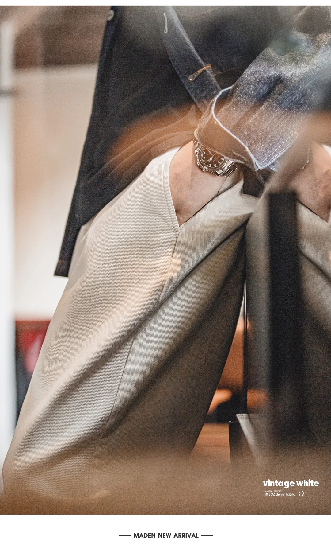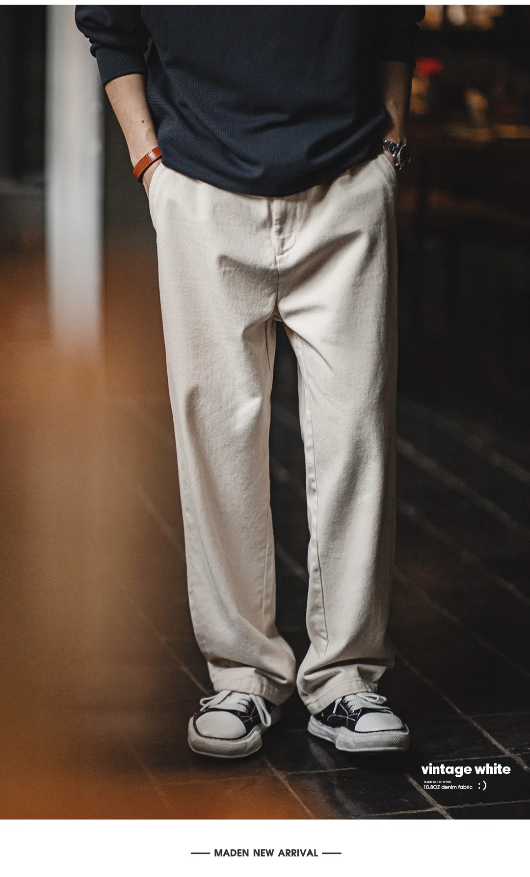 Maden Retro White 10.9OZ 100% Cotton Denim Jeans Cleanfit Loose Casual Elastic Waist Pants for Men's Spring And Autumn Trousers